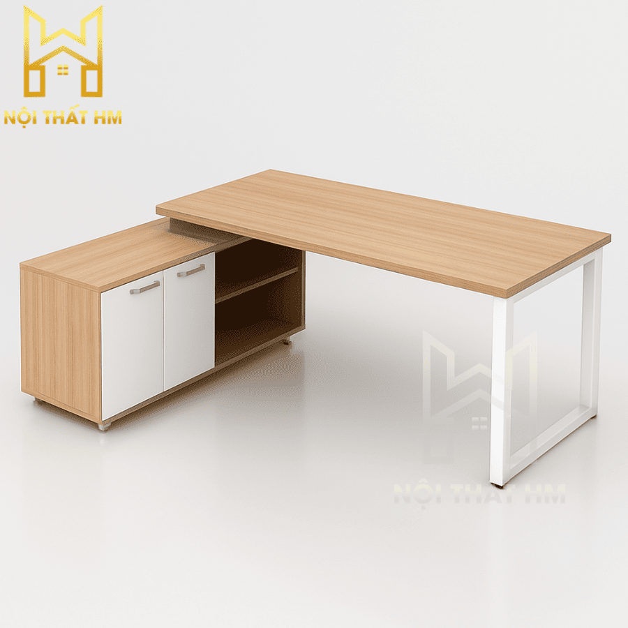 Tùy biến linh hoạt: Quý khách có thể lựa chọn lắp tủ phụ bên trái hoặc bên phải để phù hợp với hướng ngồi và hướng cửa văn phòng.