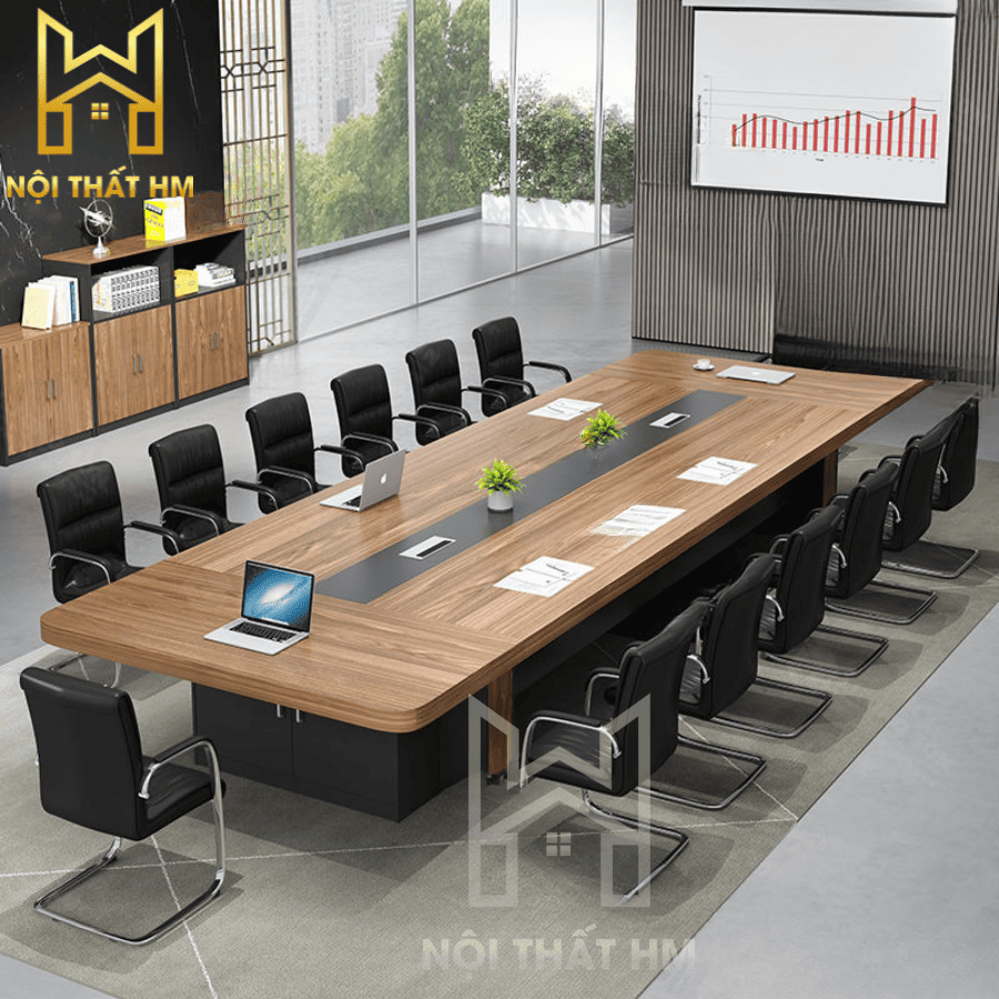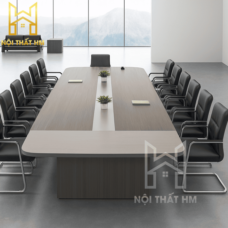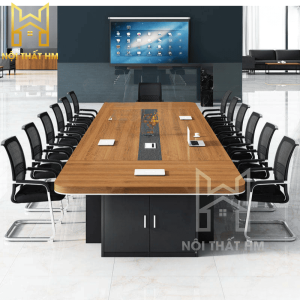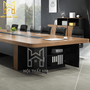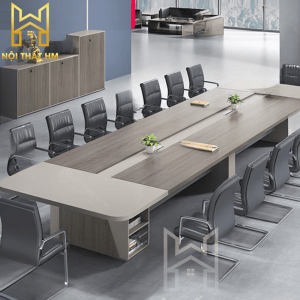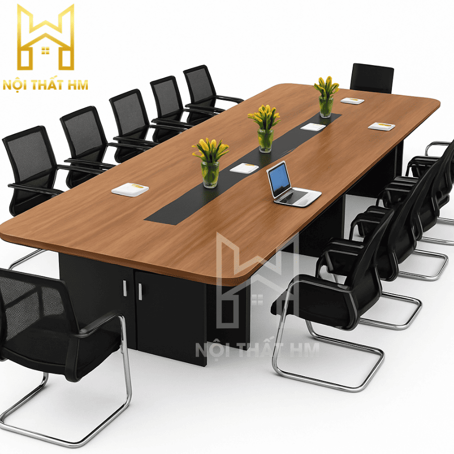 Mẫu BH14 (Phiên bản tích hợp tủ) không chỉ đóng vai trò là nơi thảo luận mà còn là một hệ tủ tài liệu khổng lồ nằm ngay dưới mặt bàn. Thiết kế này giúp giải phóng không gian xung quanh phòng họp, biến căn phòng trở nên rộng rãi và gọn gàng hơn vì không cần thêm quá nhiều tủ kệ rời.