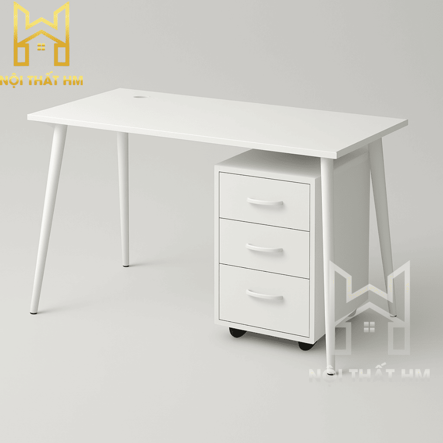 Độ dày 25mm giúp bàn trông chắc chắn và đẳng cấp hơn hẳn các dòng mặt mỏng đại trà. Lớp phủ Melamine Malaysia bền bỉ giúp bạn thoải mái bày trí máy tính, tài liệu mà không lo trầy xước bề mặt.
