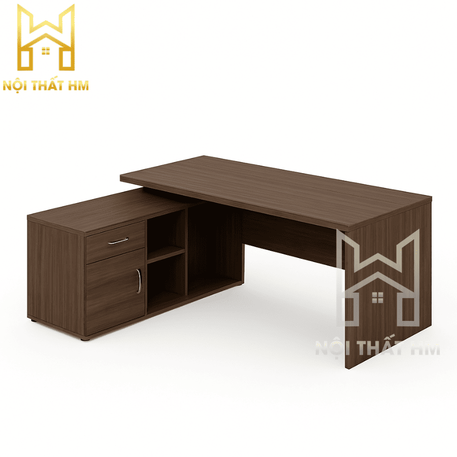 Tủ phụ dài gần bằng bàn chính giúp bạn có thêm một “trợ thủ” đắc lực. Bạn có thể đặt máy in, điện thoại bàn, khay tài liệu và các vật dụng cá nhân mà không làm chiếm diện tích thao tác trên mặt bàn chính 1m8.