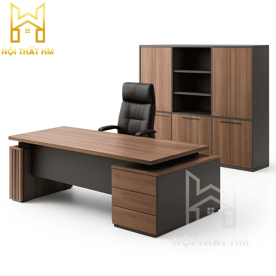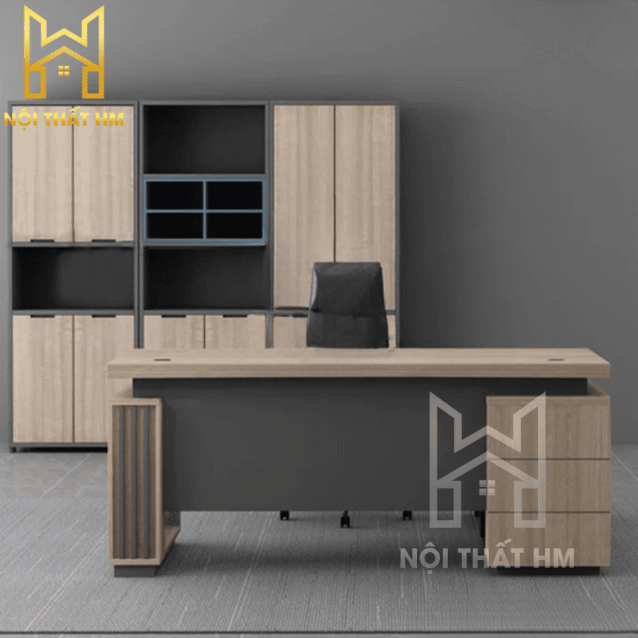 Tủ phụ đi kèm không chỉ giúp tăng diện tích mặt bàn mà còn là nơi lưu trữ hồ sơ, CPU, vật dụng cá nhân một cách kín đáo. Mặt bàn chính sẽ luôn sạch sẽ, gọn gàng, tạo ấn tượng chuyên nghiệp với đối tác và khách hàng.