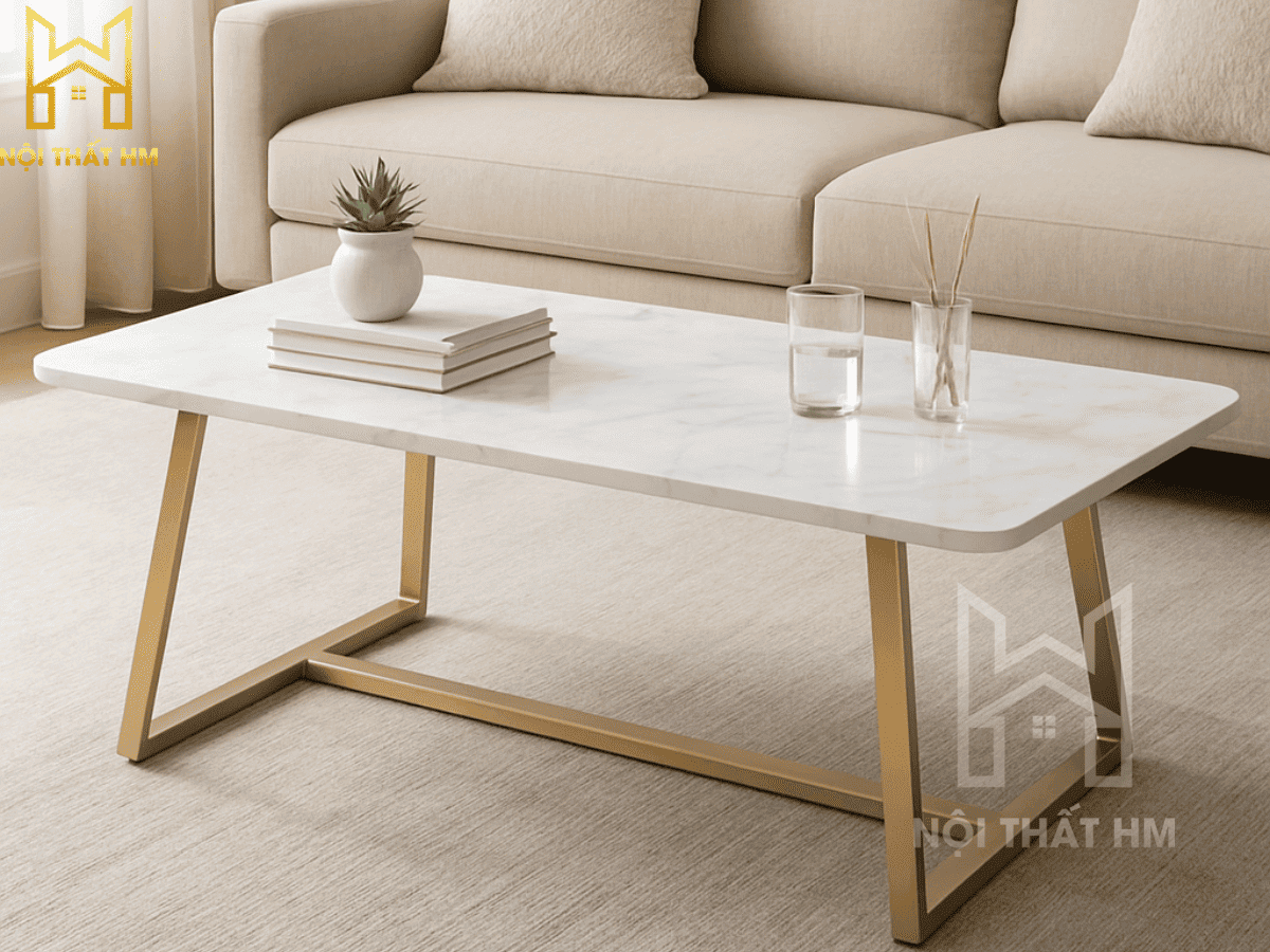 NỘI THẤT HM: BÀN TRÀ CHỮ NHẬT BT20 – SỰ GIAO THOA GIỮA KIM LOẠI & ĐÁ QUÝ