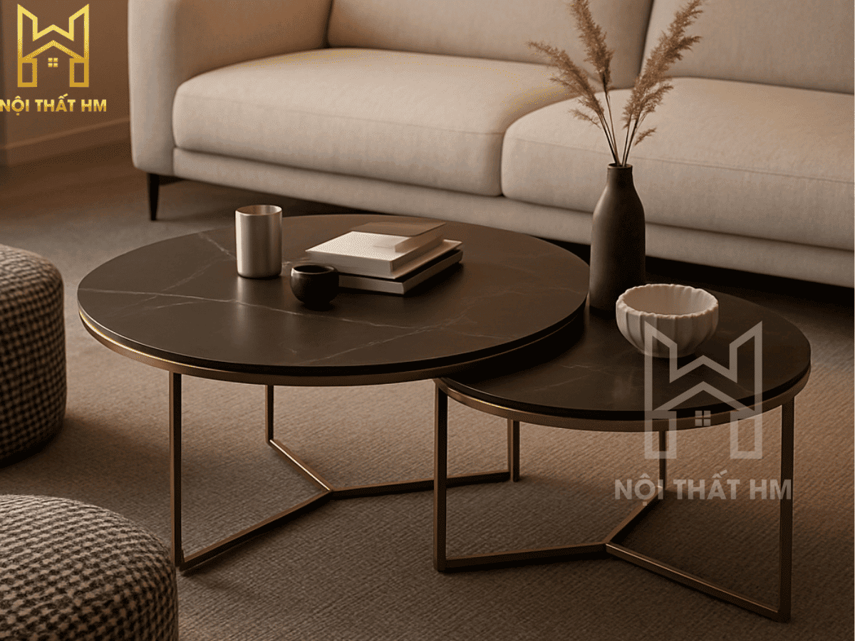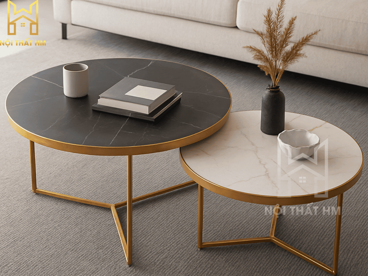 NỘI THẤT HM: BÀN TRÀ TRÒN ĐÔI CERAMIC BT03 – SANG TRỌNG & THÁCH THỨC THỜI GIAN