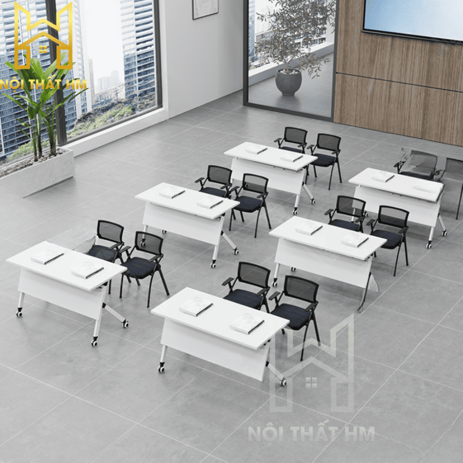 Mẫu BT03 được thiết kế để biến mọi không gian trở thành phòng họp hoặc lớp học chỉ trong vài giây. Với bánh xe xoay 360 độ, bạn không cần tốn sức bê vác, chỉ cần đẩy nhẹ là có thể thay đổi cấu trúc phòng học từ dạng hàng ngang sang dạng chữ U hoặc thảo luận nhóm.