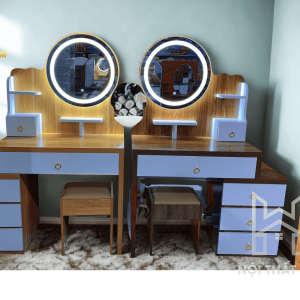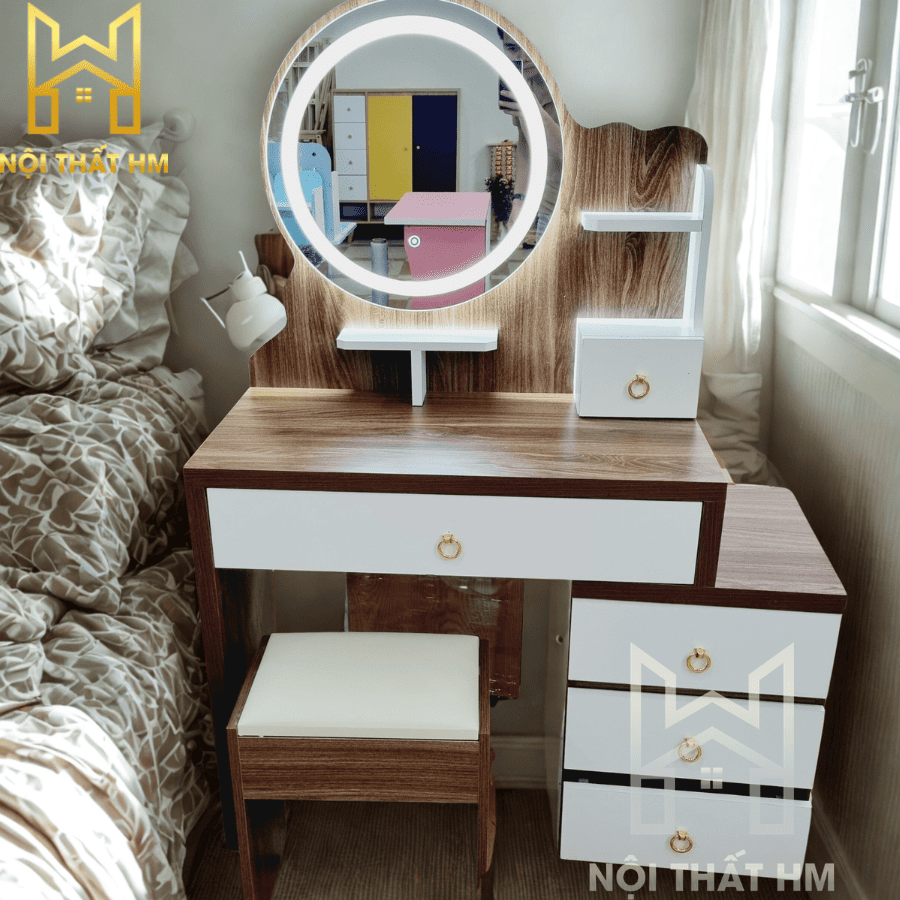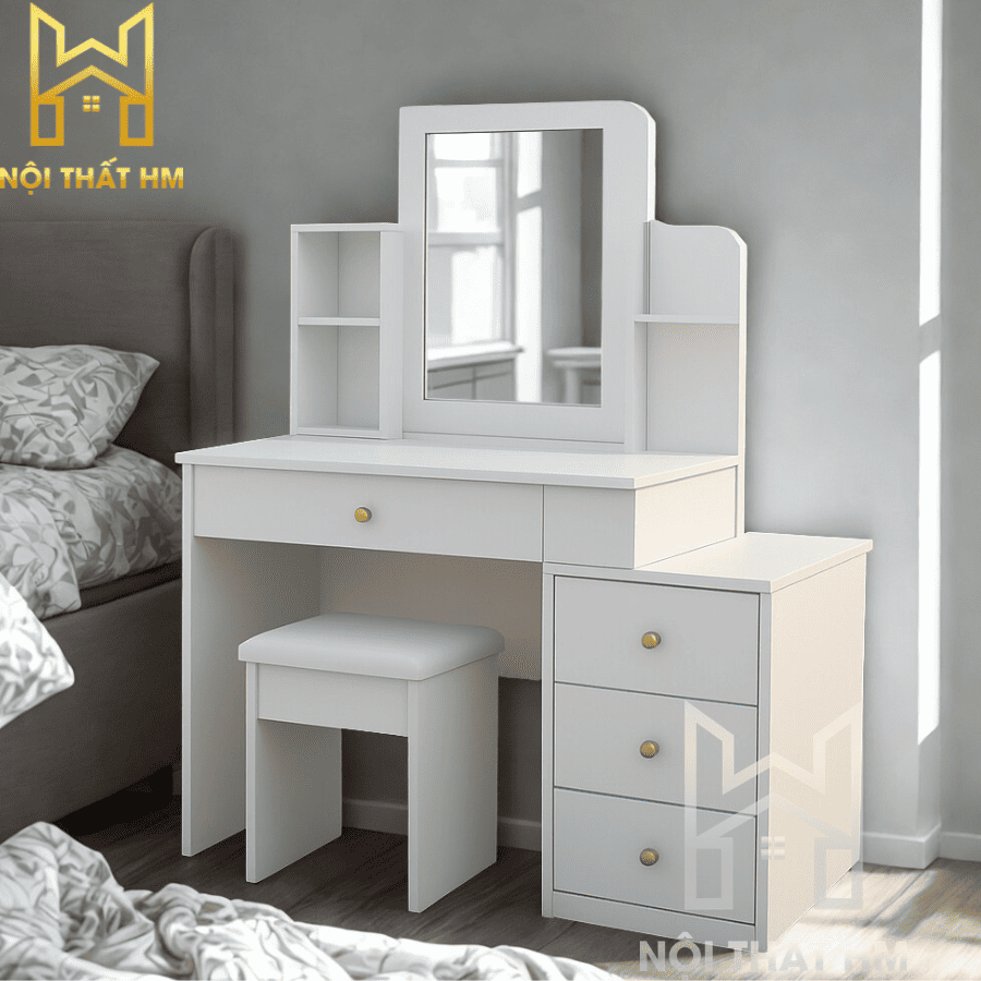 Mẫu BTD01 là giải pháp hoàn hảo cho góc làm đẹp của phái nữ. Điểm ăn tiền nhất chính là thiết kế “module linh hoạt”, cho phép bạn điều chỉnh chiều dài bàn để vừa khít với khoảng trống trong phòng ngủ, dù đó là góc hẹp 80cm hay mảng tường rộng 1m2.