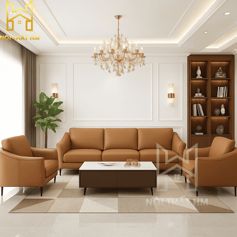 NỘI THẤT HM: BỘ 3 GHẾ SOFA DA CAO CẤP SFD11 – ĐẲNG CẤP PHÒNG KHÁCH MASTER