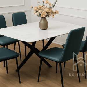 Cấu tạo bộ: 01 Bàn mặt đá chân X + 06 Ghế nhập khẩu Hàn Quốc.
