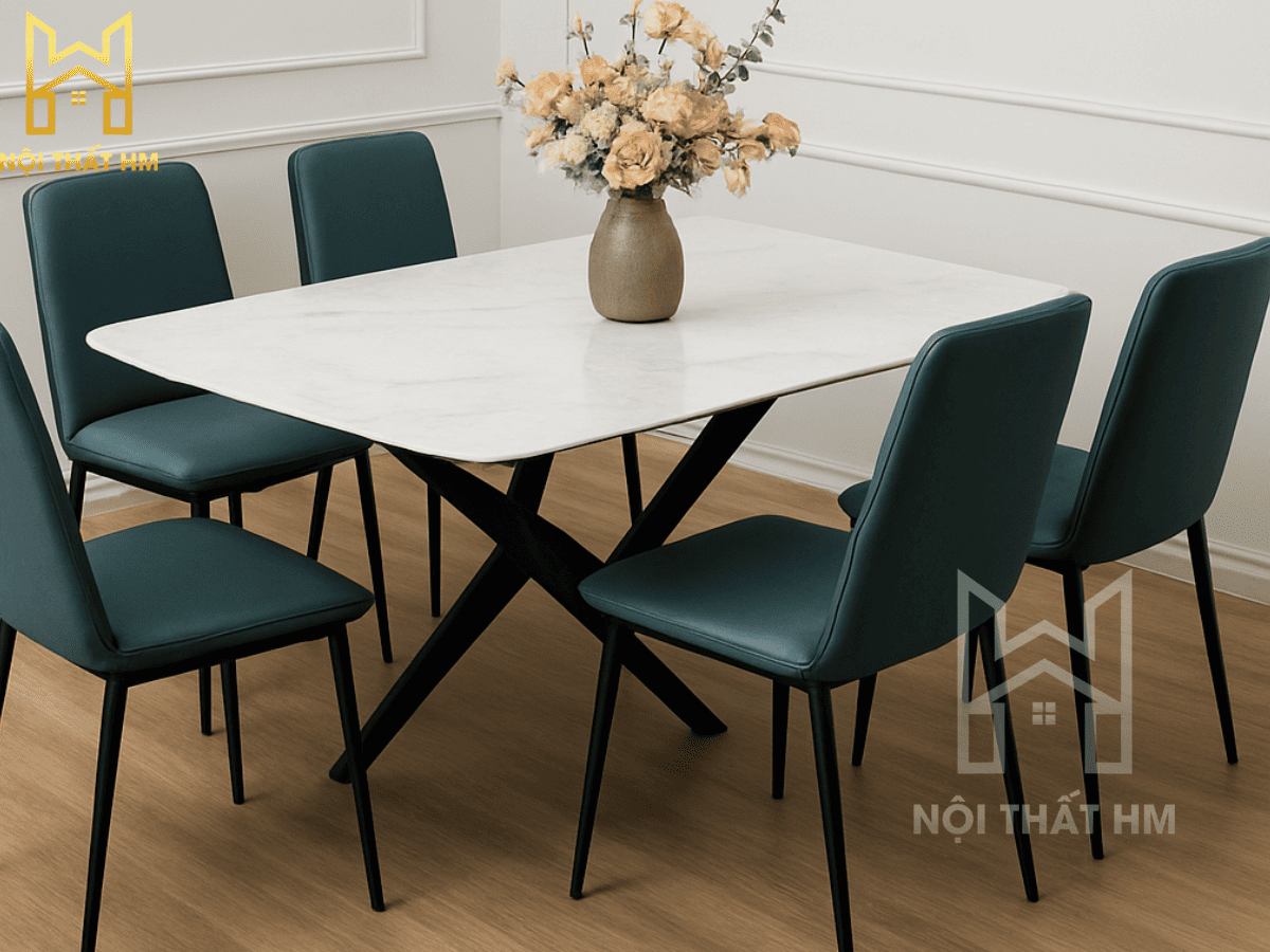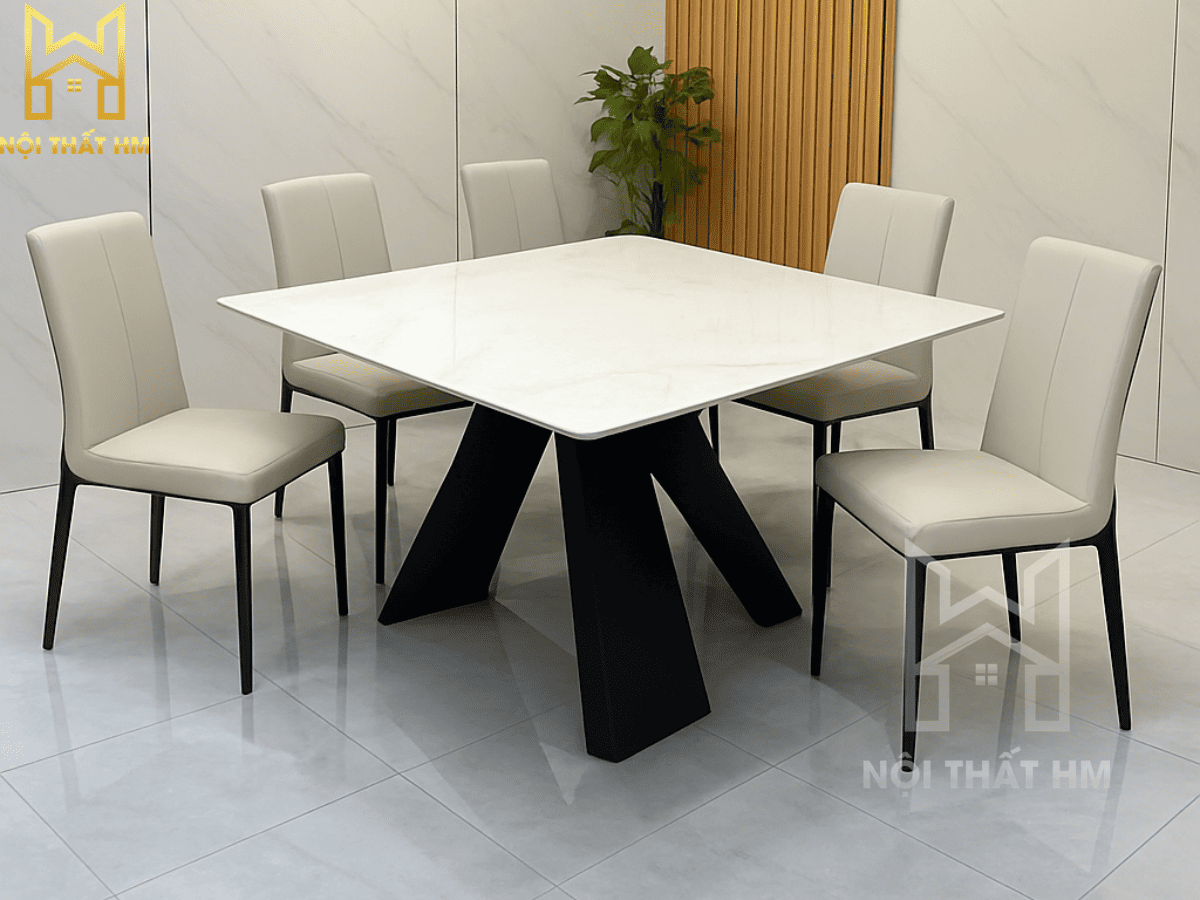 Độ bền vĩnh cửu: Sự kết hợp giữa Thép, Inox Titan và đá Ceramic giúp bộ bàn ăn có tuổi thọ vượt trội so với các dòng gỗ ép thông thường.