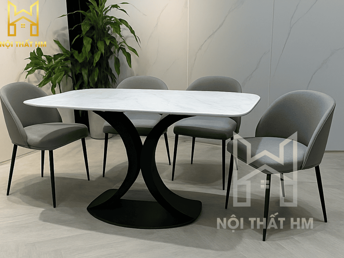 Kiểu dáng biểu tượng: Những đường cong thép đan chéo tinh xảo mang lại vẻ đẹp thanh thoát, phá cách so với các kiểu chân bàn 4 trụ truyền thống. Thiết kế này tạo hiệu ứng thị giác giúp phòng ăn trông thoáng đãng hơn.