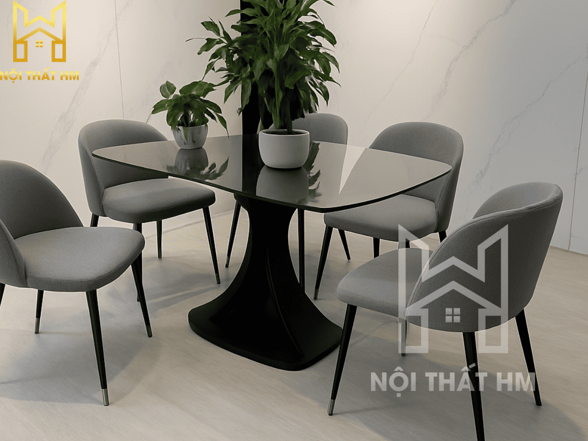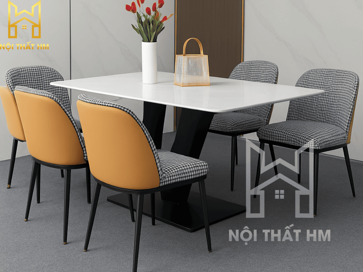 NỘI THẤT HM: BỘ BÀN ĂN CAO CẤP BA16 – ĐIỂM NHẤN CHANEL & CHÂN GHẾ PHỦ TITAN