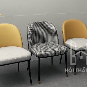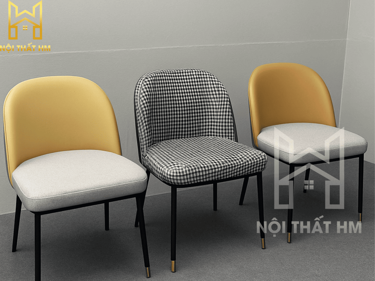 Chất liệu ghế: Khung thép sơn tĩnh điện, chân bọc Inox phủ Titan vàng gương; Nệm bọc da Microfiber Hàn Quốc (Mềm mại, bền bỉ và vô cùng sang trọng).