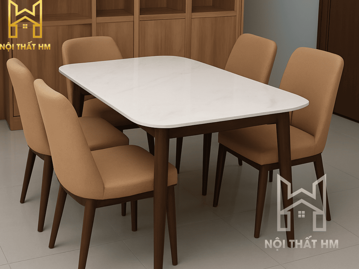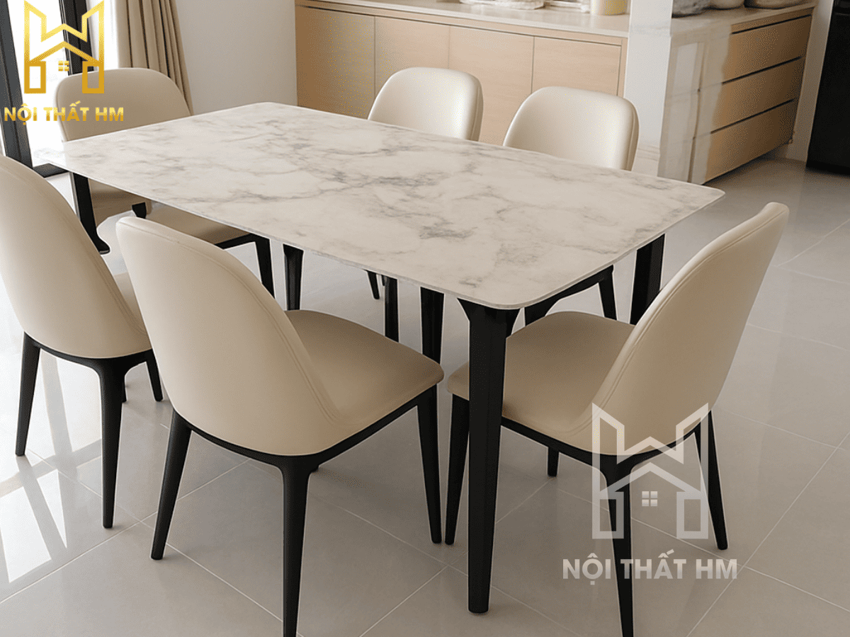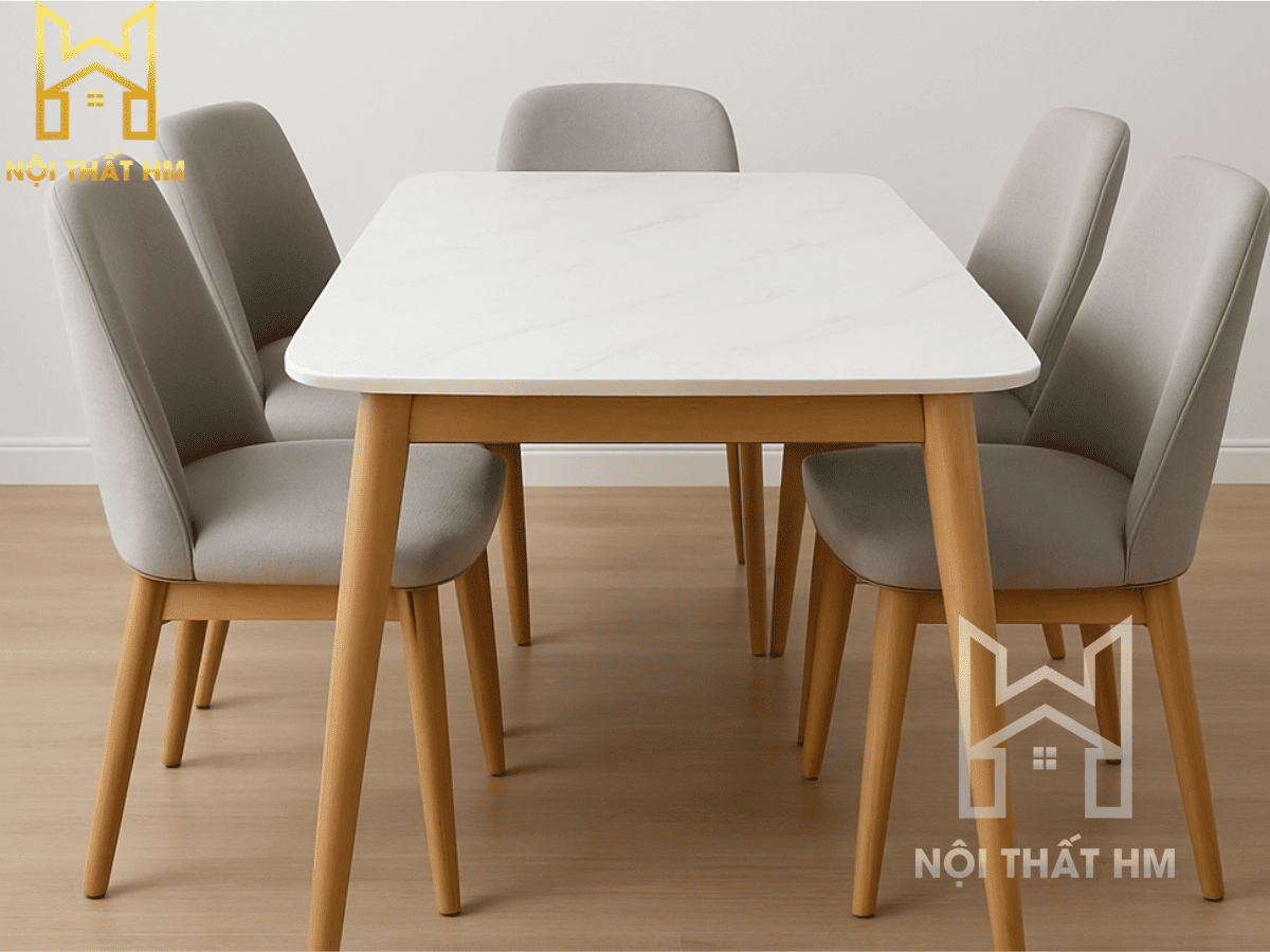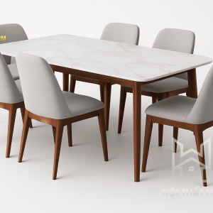 NỘI THẤT HM: BỘ BÀN ĂN DOXA BA20 – SỰ GIAO THOA GIỮA GỖ TỰ NHIÊN & ĐÁ MARBLE