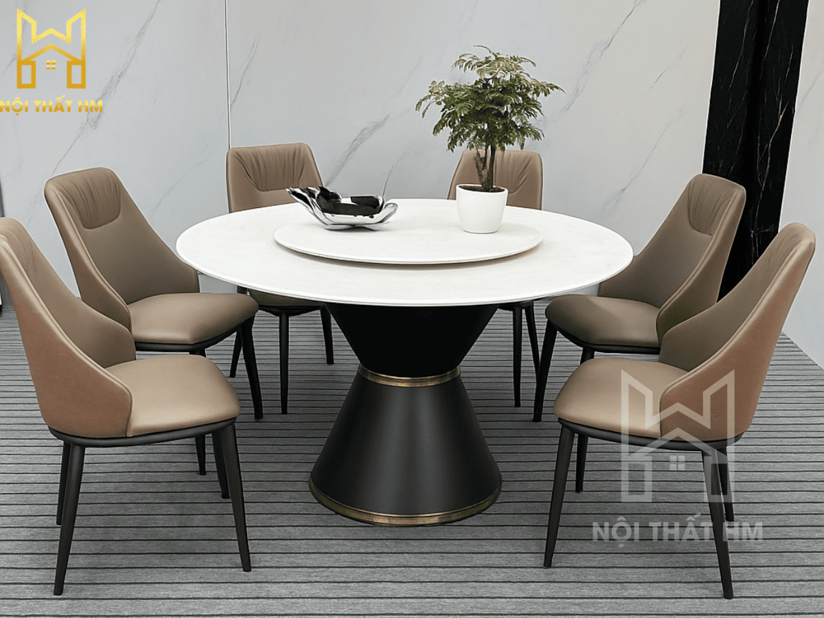 NỘI THẤT HM: BỘ BÀN ĂN TRÒN XOAY BA09 – BIỂU TƯỢNG CỦA SỰ GẮN KẾT & SANG TRỌNG