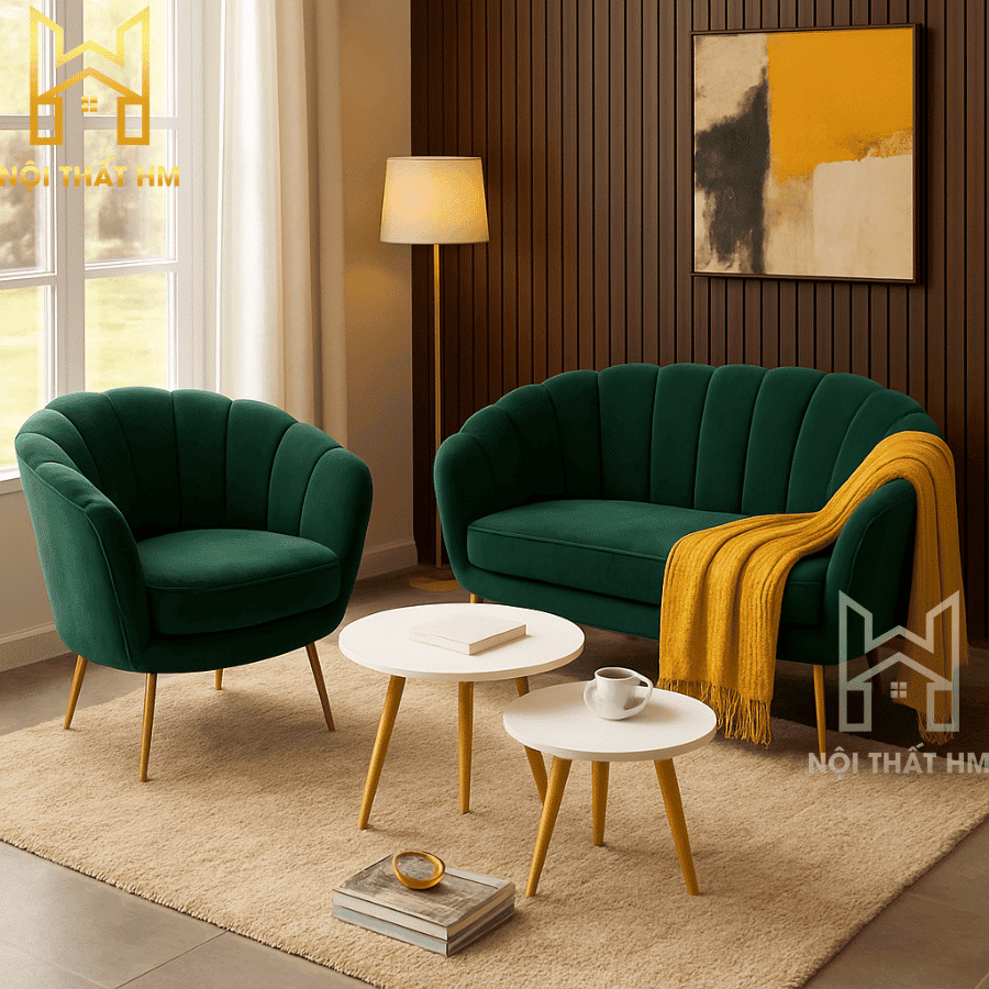NỘI THẤT HM: BỘ SOFA NỈ NHUNG SFN11 – SANG TRỌNG TRONG TỪNG ĐƯỜNG NÉT
