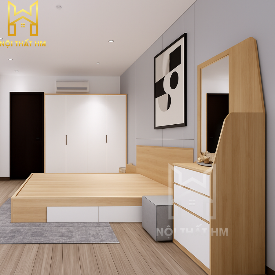 Tính thống nhất: Bộ sản phẩm đồng bộ mang lại cảm giác chuyên nghiệp, biến phòng ngủ chung cư hay nhà phố của bạn thành một không gian nội thất cao cấp.