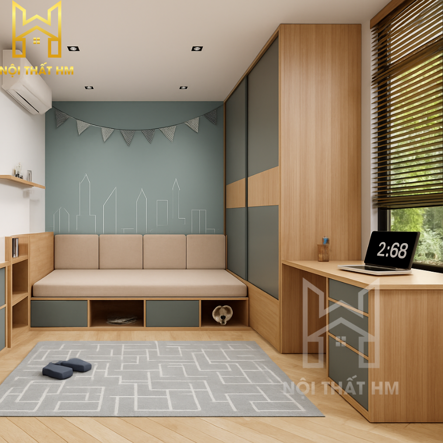 Combo giường tủ phòng ngủ nhỏ CB08 từ Nội thất HM là lựa chọn hoàn hảo dành cho các căn hộ có diện tích hạn chế. Thiết kế này mang đến sự tiện nghi, gọn gàng và hiện đại, giúp biến những căn phòng nhỏ hẹp trở thành không gian sống lý tưởng. Với bộ sản phẩm gồm giường ngủ, tủ quần áo và bàn học được sắp xếp khoa học, CB08 tận dụng tối đa từng mét vuông diện tích mà vẫn toát lên vẻ sang trọng, tinh tế.