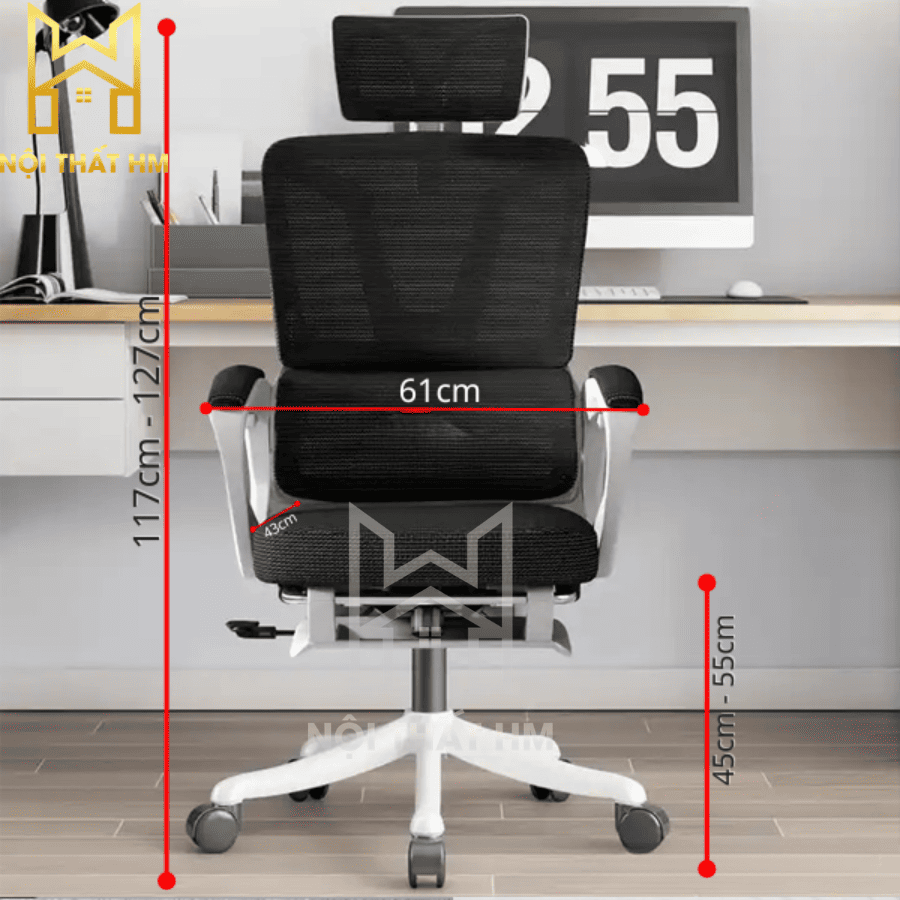 Cao tổng thể: 117 cm – 127 cm (Đặc biệt: Tựa đầu có thể nâng thêm 7 cm để phù hợp với người cao lớn).