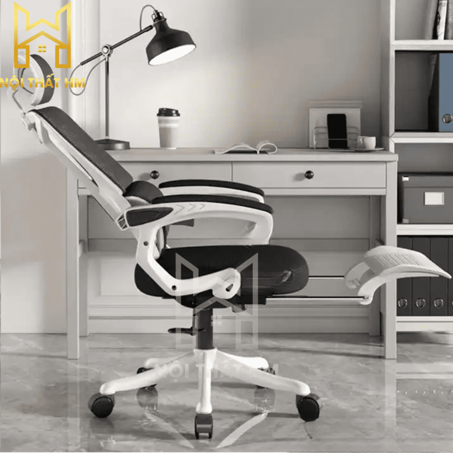 Khác với các dòng ghế nhân viên thông thường, GX38 sở hữu hệ thống gác chân rút gọn thông minh. Khi kết hợp cùng độ ngả 135 độ và phần tay vịn bọc mút, bạn sẽ có một tư thế nằm nghỉ ngơi thoải mái, giúp cột sống được thả lỏng hoàn toàn sau những giờ làm việc căng thẳng.