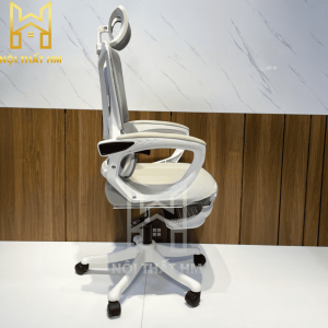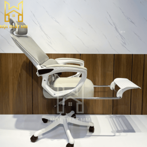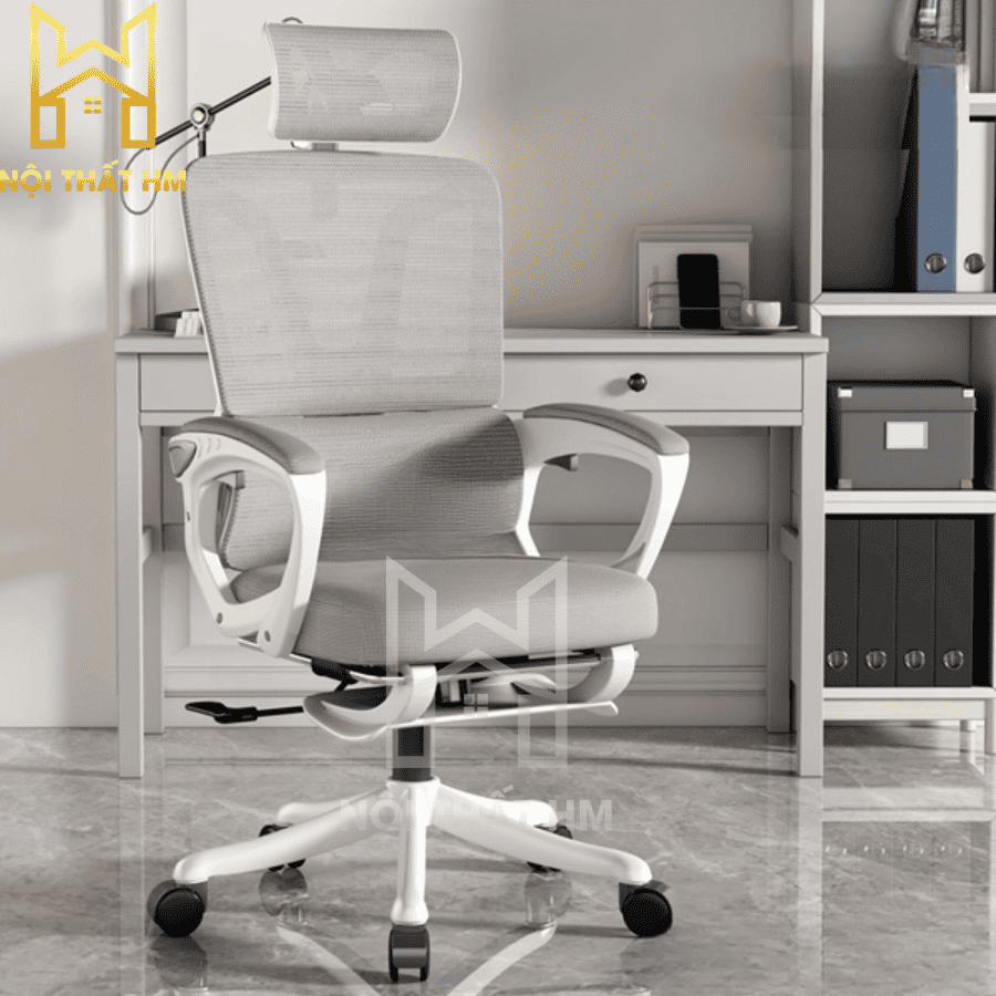 Lưng & Đệm: Lưới cường lực và nệm mút màu Ghi xám – vừa sang trọng vừa giữ được độ mới lâu hơn màu trắng thuần.