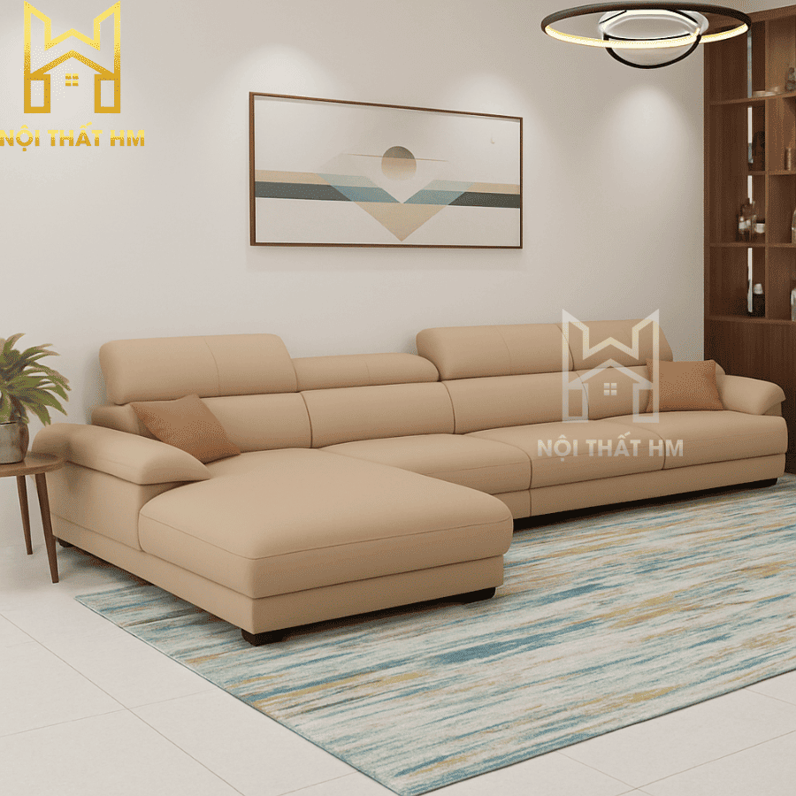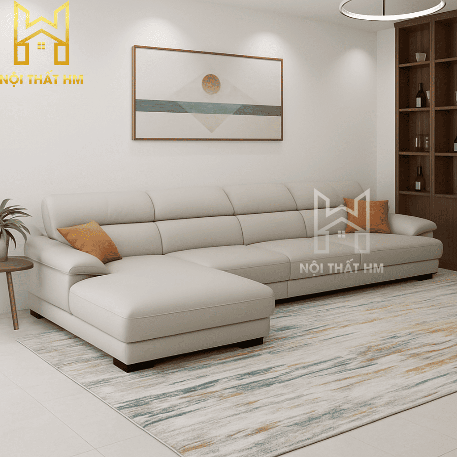 Kiểu dáng: Sofa góc chữ L (Tối ưu hóa không gian góc hoặc làm vách ngăn tự nhiên giữa các phòng).