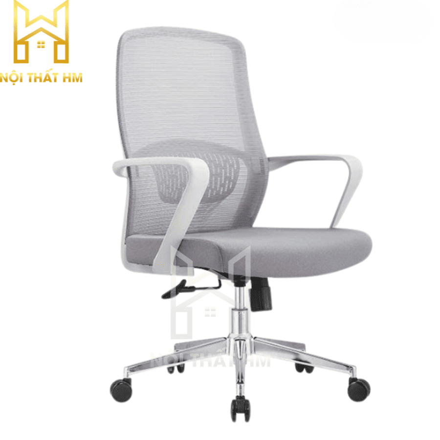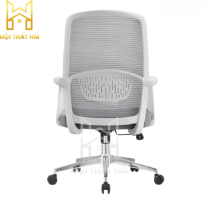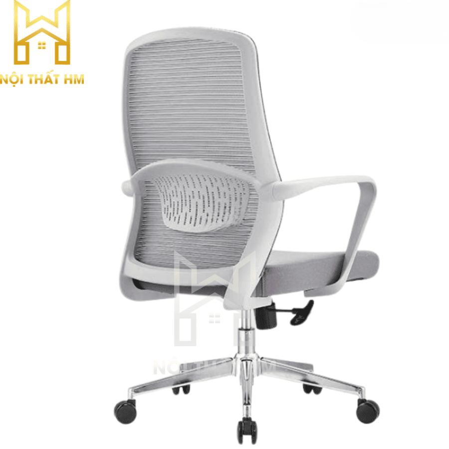 Lưng ghế: Lưới cường lực màu ghi, thoáng mát, không tích nhiệt, tạo cảm giác nhẹ nhàng cho không gian.