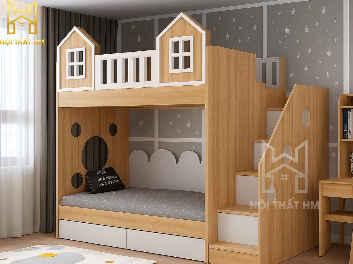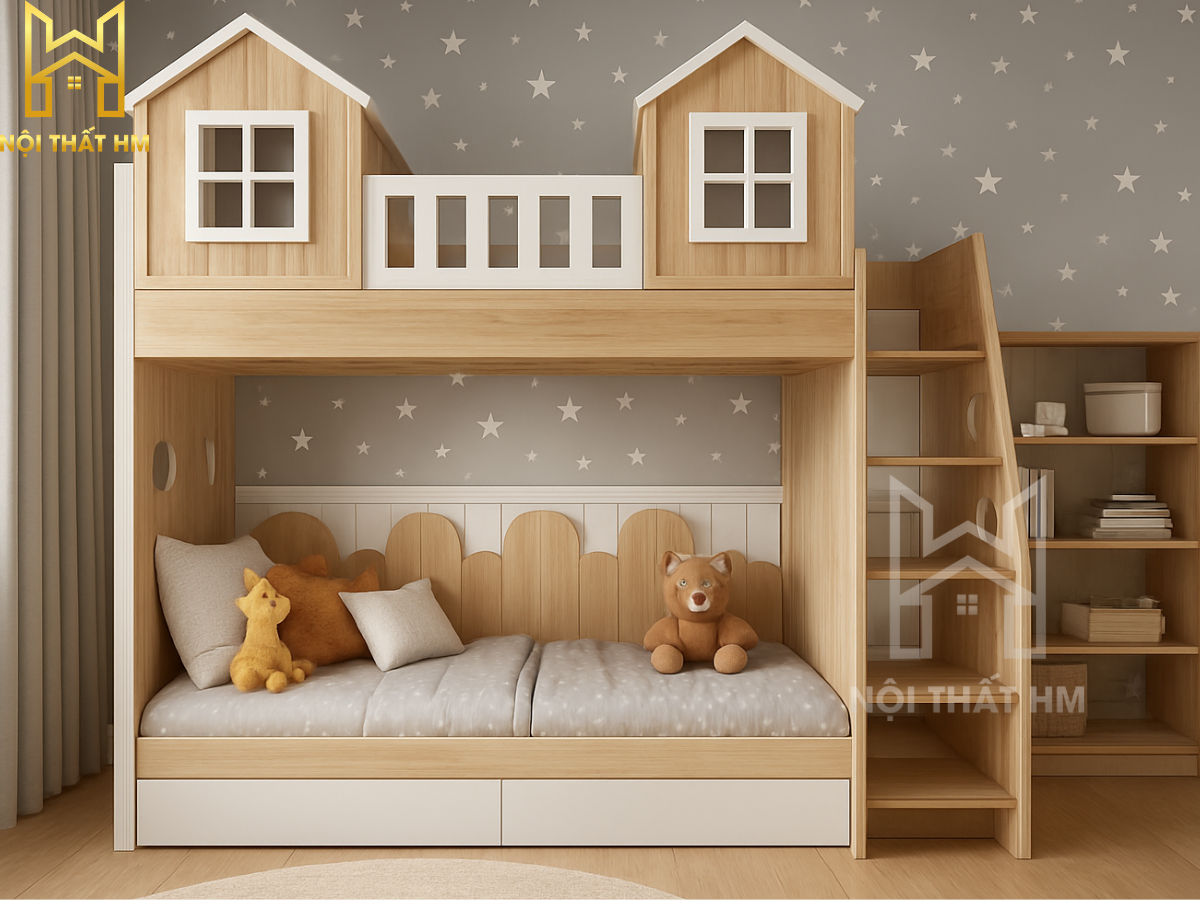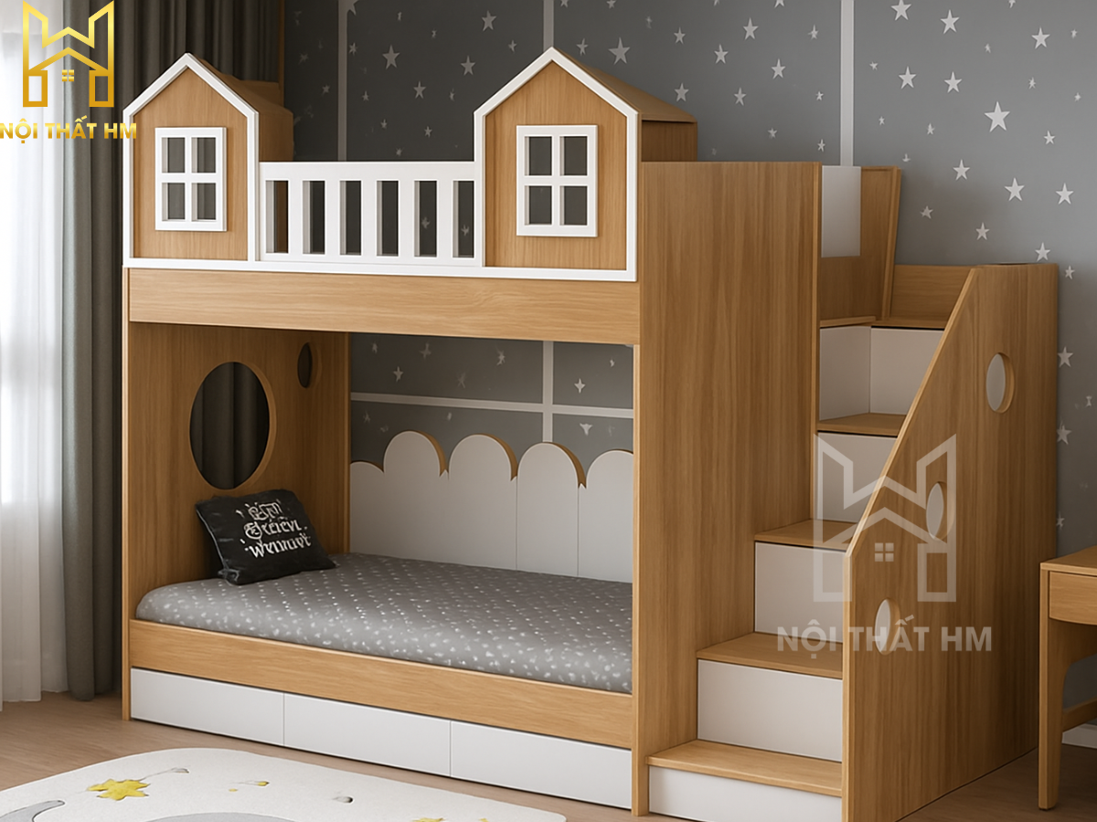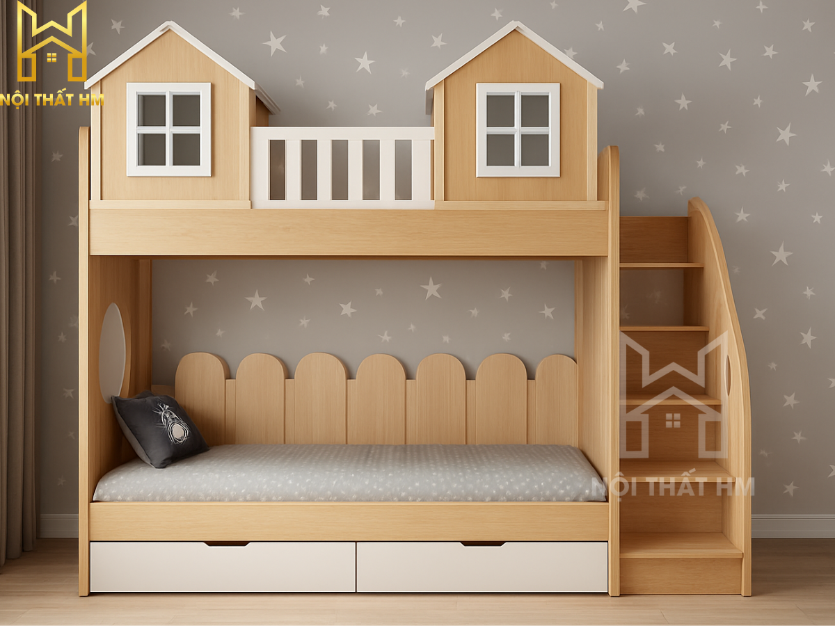NỘI THẤT HM: GIƯỜNG HAI TẦNG GT15 – NGÔI NHÀ CỔ TÍCH CHO CÔNG CHÚA NHỎ