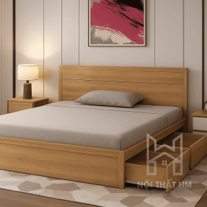 Bề mặt bóng mịn: Lớp Melamine cao cấp bảo vệ giường khỏi các vết trầy xước, giữ cho màu sắc luôn tươi mới sau nhiều năm sử dụng.