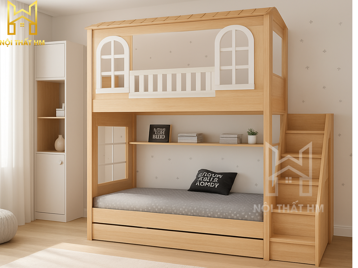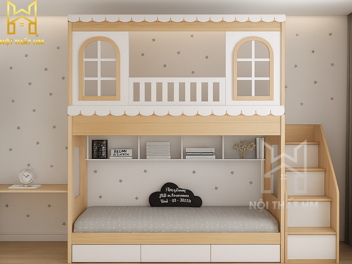 NỘI THẤT HM: GIƯỜNG TẦNG NGÔI NHÀ GT14 – “BIỆT THỰ” TRONG MƠ CHO BÉ YÊU