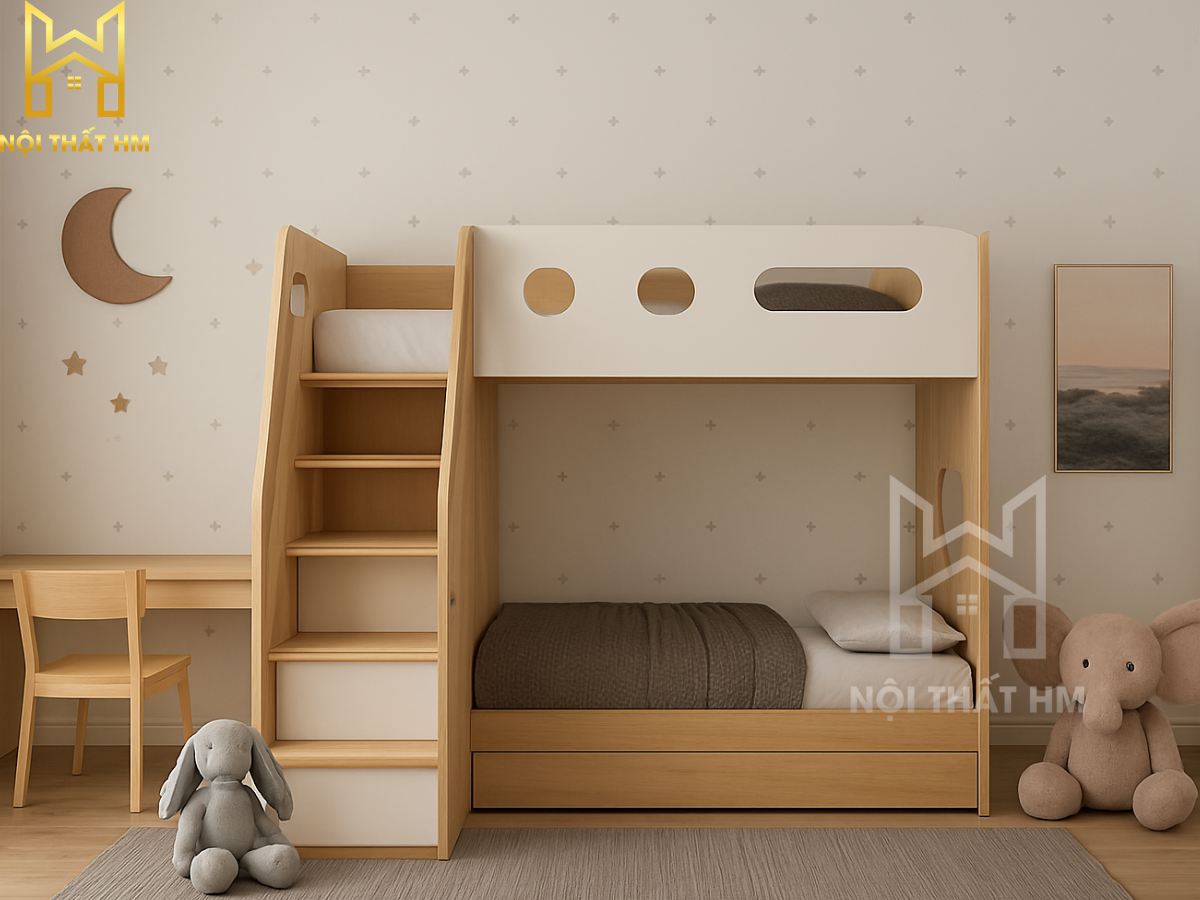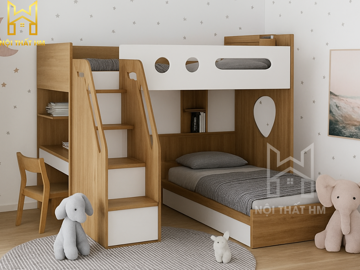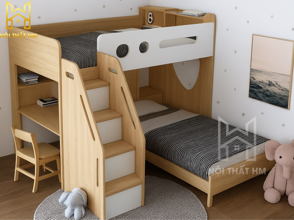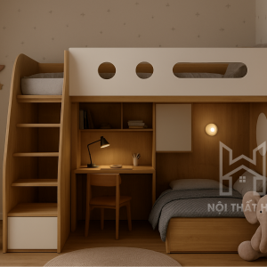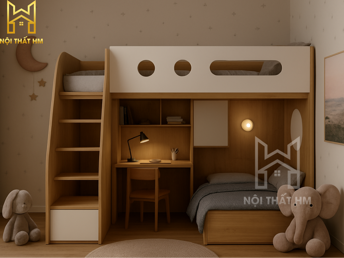 Trong xu hướng kiến trúc hiện đại, nội thất thông minh không chỉ là một lựa chọn mà là giải pháp thiết yếu để nâng cao chất lượng sống. Giường tầng tích hợp bàn học GT17 từ Nội thất HM là một minh chứng cho sự sáng tạo vượt giới hạn, mang đến không gian đa năng: Ngủ nghỉ – Học tập – Lưu trữ chỉ trong một hệ thống duy nhất.