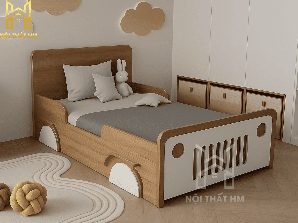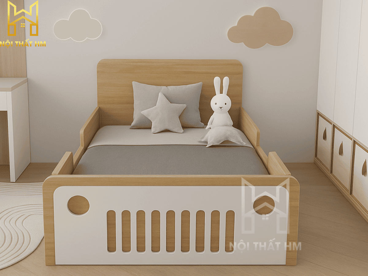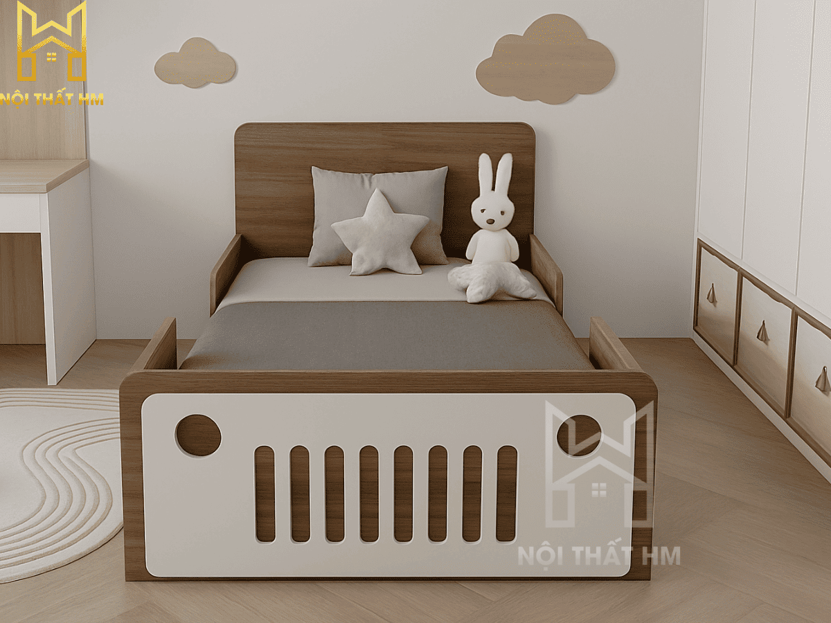 Không góc nhọn: Tất cả các góc cạnh của giường đều được bo tròn mềm mại, giúp bảo vệ bé khỏi những va chạm gây đau khi chơi đùa trong phòng.