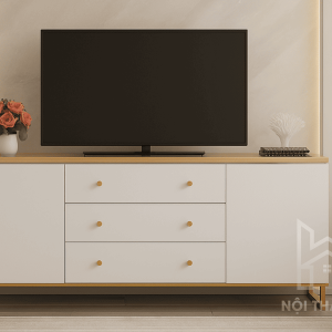Sử dụng MDF lõi xanh dày dặn, KTV03 đảm bảo không bị võng bề mặt sau thời gian dài sử dụng. Hệ thống chân đế (hoặc chân gỗ tự nhiên tùy chọn) giúp tủ đứng vững, chịu được trọng tải lớn từ tivi và đồ dùng bên trong.