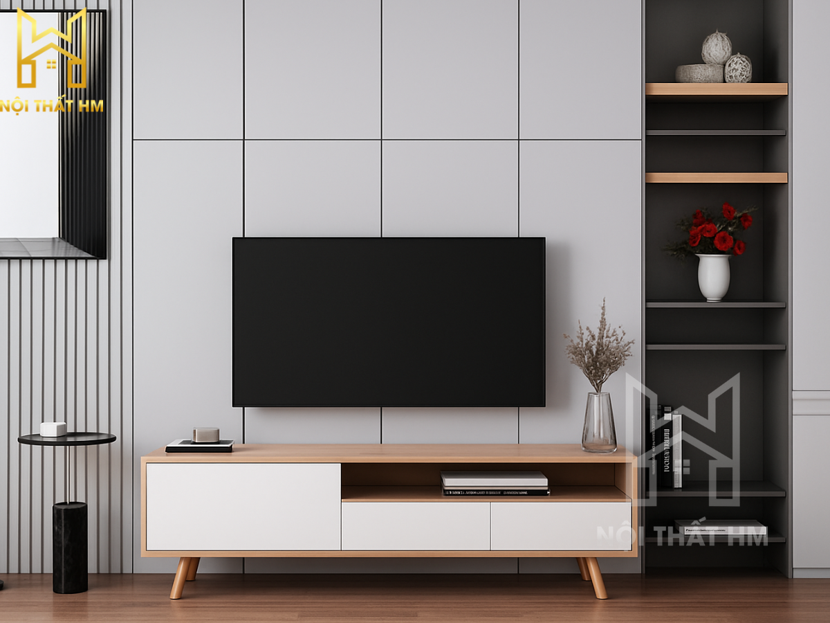 NỘI THẤT HM: KỆ TIVI NHỎ GỌN KTV10 – GIẢI PHÁP TỐI ƯU CHO KHÔNG GIAN HẸP
