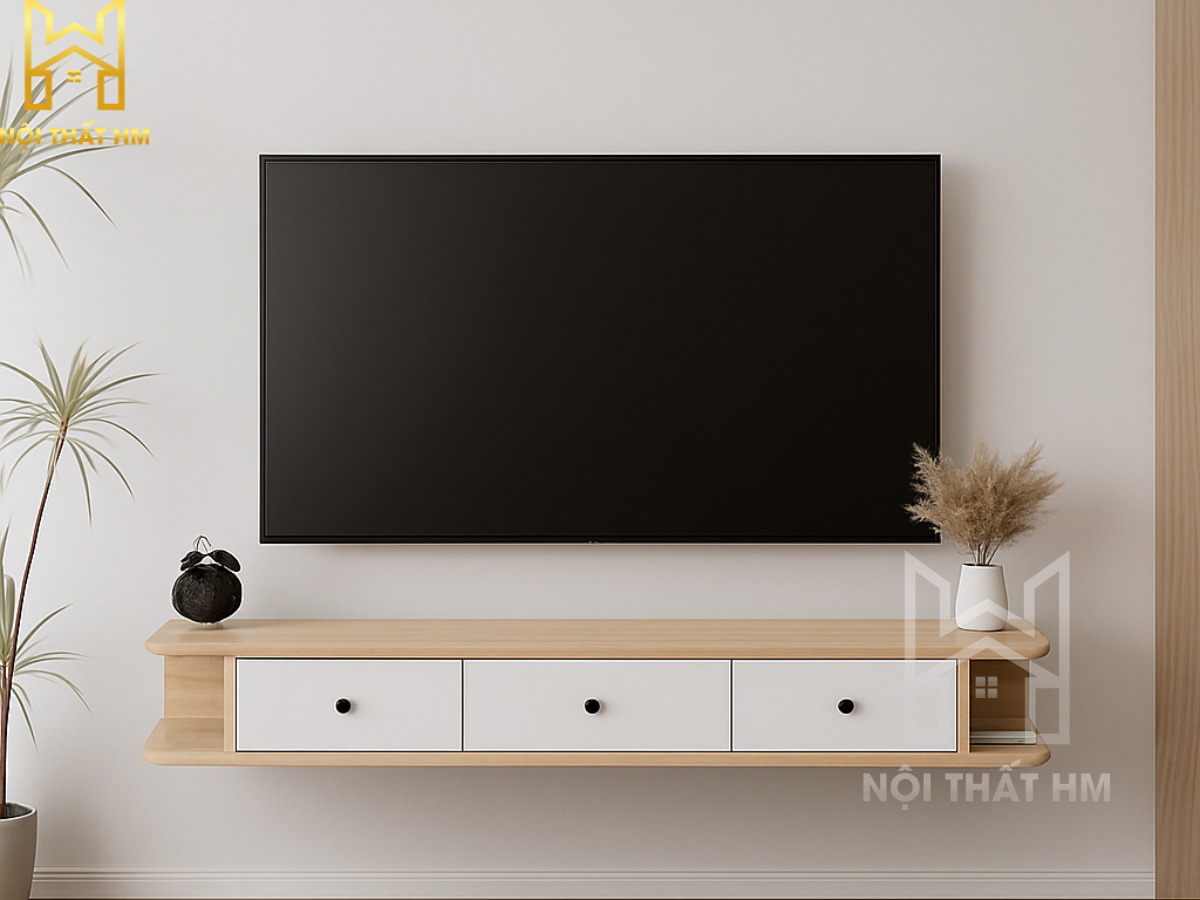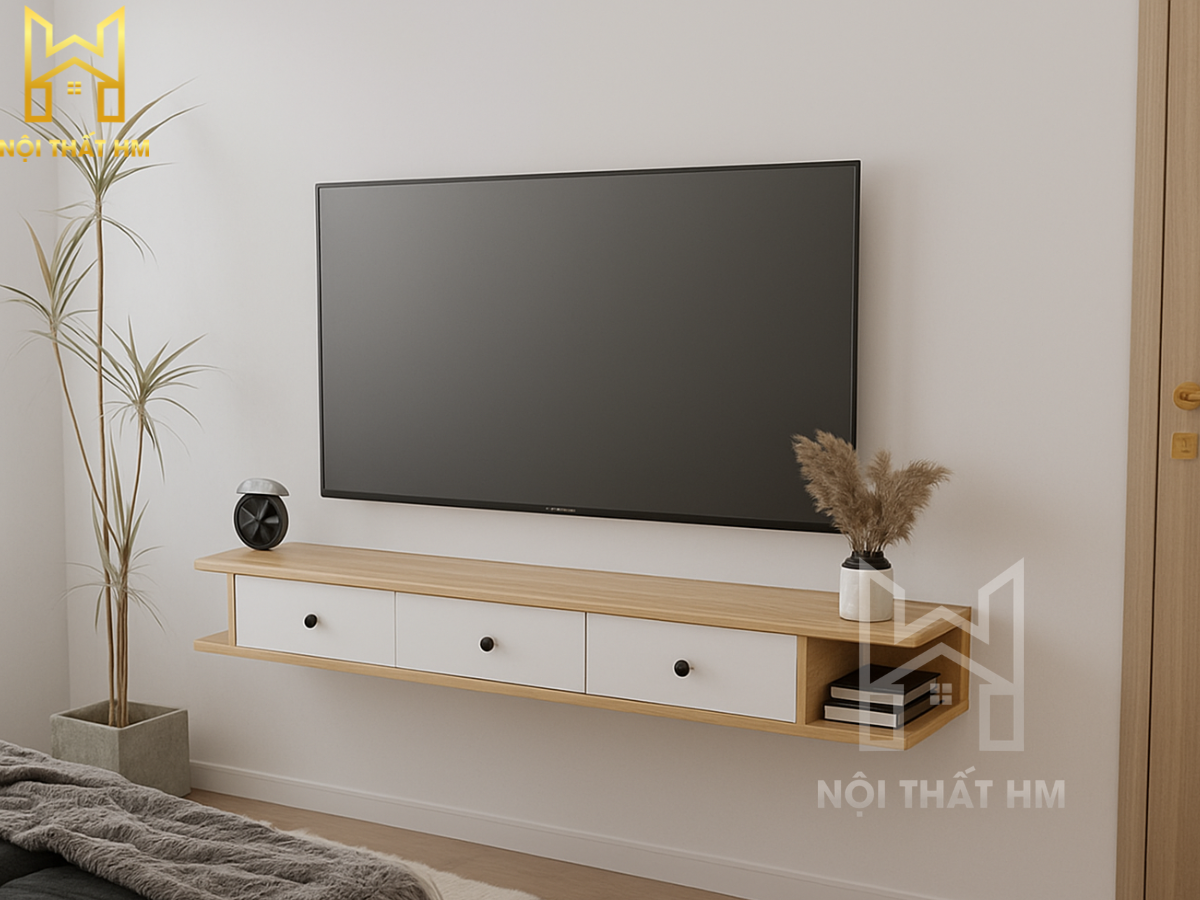 NỘI THẤT HM: KỆ TIVI TREO TƯỜNG PHÒNG NGỦ KTV02 – GỌN GÀNG & TINH TẾ