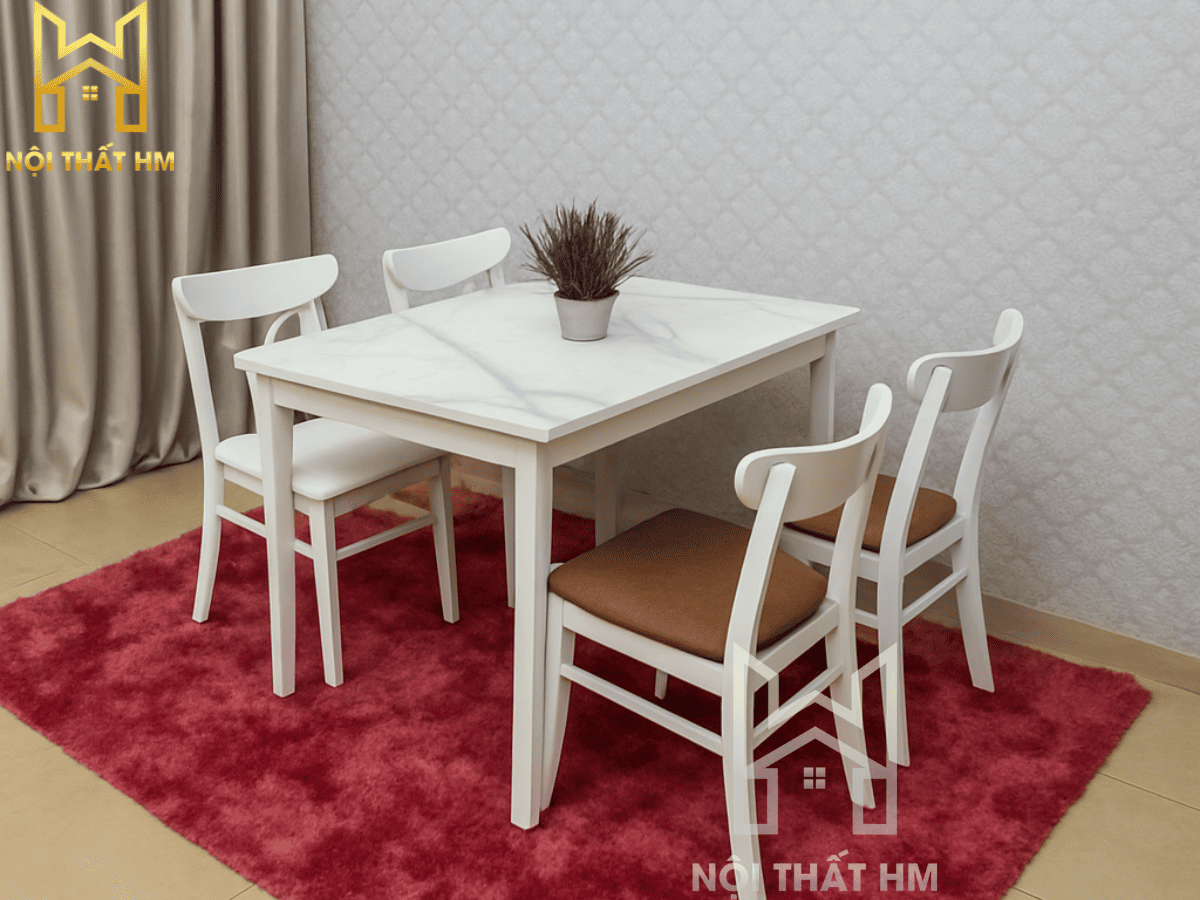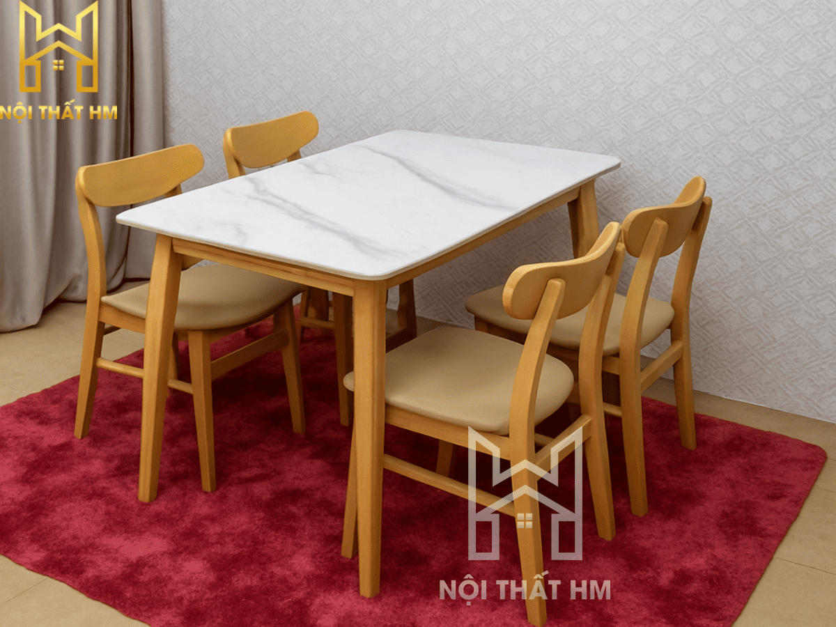 Thiết kế vượt thời gian: Kiểu dáng tối giản giúp bộ bàn ăn không bao giờ lỗi mốt và dễ dàng phối hợp với mọi loại tủ bếp hay sàn nhà.