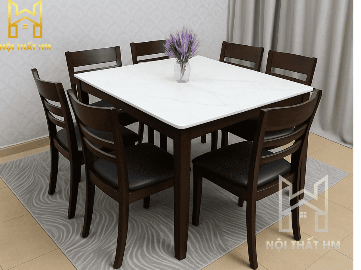 Kích thước bàn: D1200 x R750 x C750 (mm) (Kích thước hoàn hảo cho gia đình 4 người).