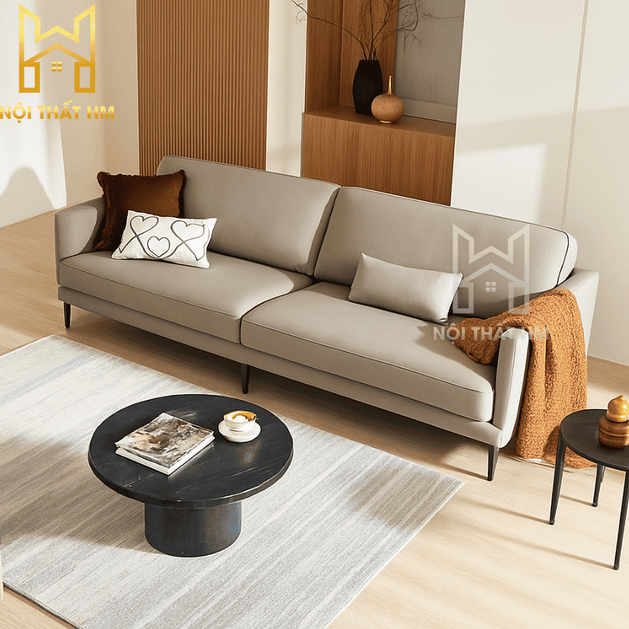 NỘI THẤT HM: SOFA DA BĂNG DÀI SFD33 – SẮC GHI TRUNG TÍNH, TINH TẾ VÀ HIỆN ĐẠI