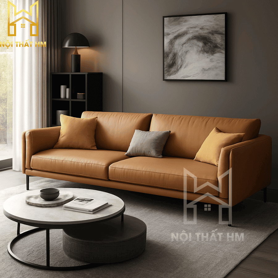 NỘI THẤT HM: SOFA DA NHỎ GỌN SFD18 – CHẤT LIỆU THƯỢNG HẠNG CHO KHÔNG GIAN TINH TẾ