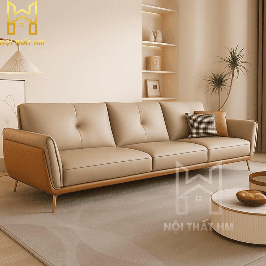 NỘI THẤT HM: SOFA VĂNG DA SANG TRỌNG SFD04 – SỰ LỰA CHỌN HOÀN HẢO CHO CĂN HỘ HIỆN ĐẠI