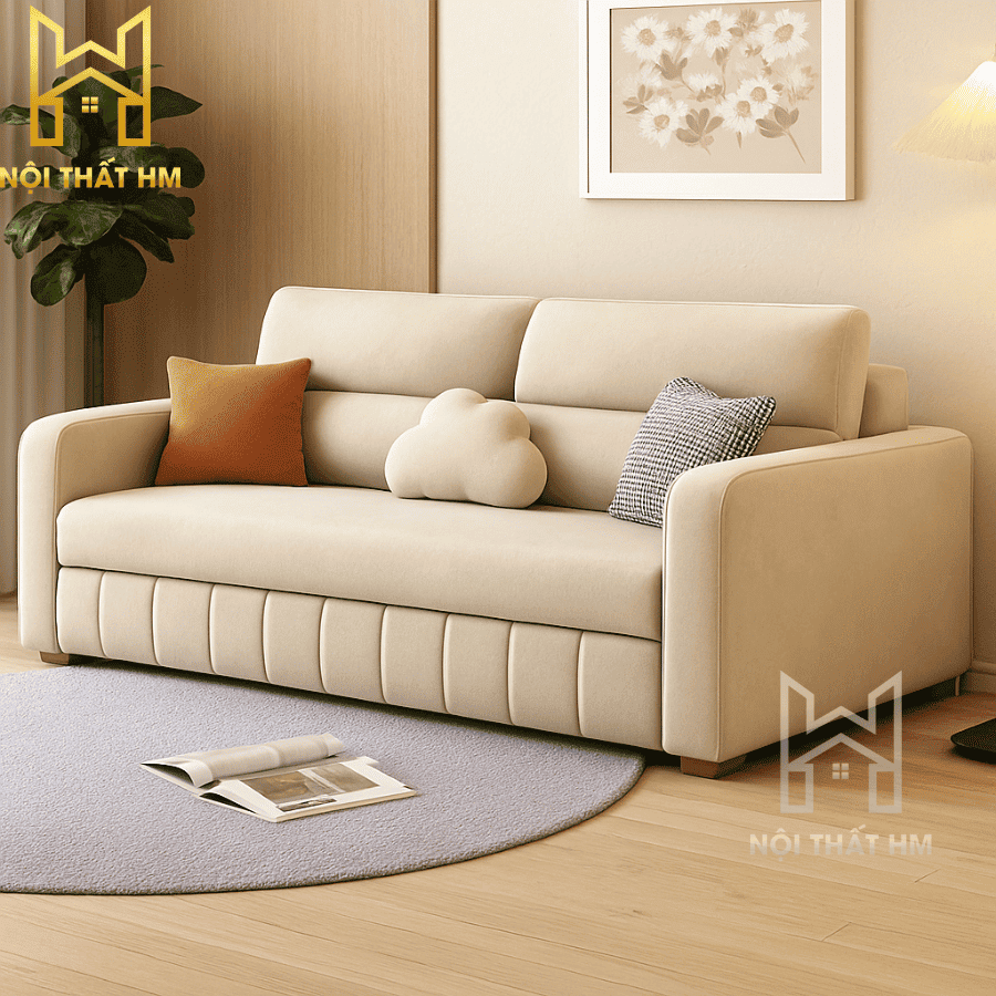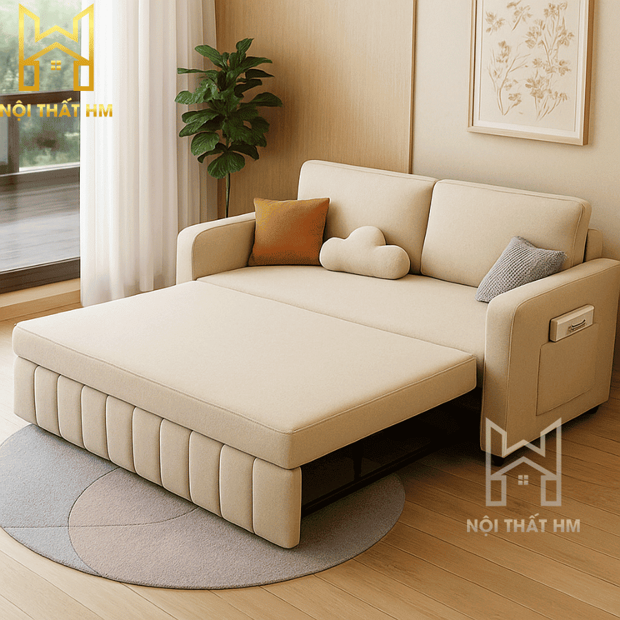 Giá thành dễ tiếp cận: Đây là dòng sofa giường có mức giá cạnh tranh nhất tại Nội thất HM, giúp bạn tiết kiệm chi phí mà vẫn giải quyết được vấn đề chỗ ngủ cho khách.