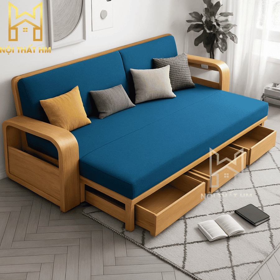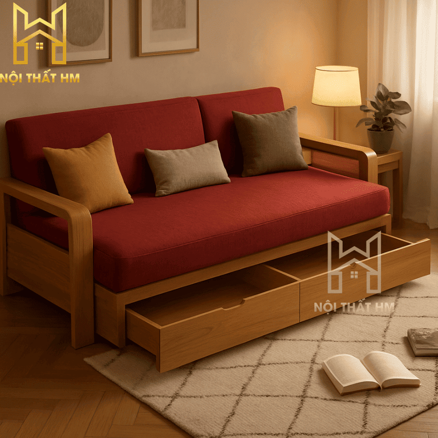 NỘI THẤT HM: SOFA GIƯỜNG GỖ CÓ NGĂN KÉO SFG18 – TỐI ƯU HÓA TIỆN ÍCH