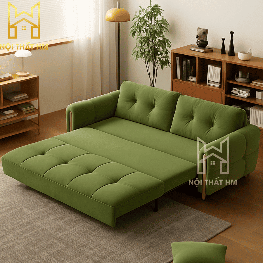 Mẫu Sofa giường SFG09 được thiết kế tập trung vào sự tiện dụng tuyệt đối. Với cơ chế ngăn kéo thông minh ẩn dưới gầm ghế, bạn có thể biến không gian phòng khách thành phòng ngủ chỉ trong vòng 5 giây. Kích thước 1.6m x 1.9m là lựa chọn hoàn hảo cho các cặp vợ chồng trẻ hoặc sử dụng trong phòng ngủ phụ.