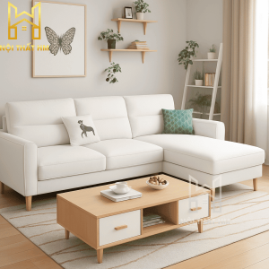 Tận dụng không gian: Với chiều dài chỉ 2m1 và phần góc 1m4, SFN08 dễ dàng đặt vừa vặn trong các căn hộ studio hoặc phòng khách có chiều ngang hẹp.