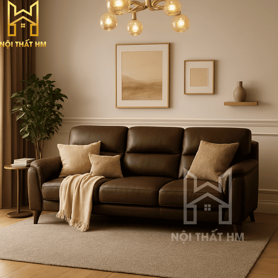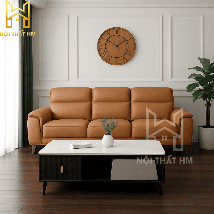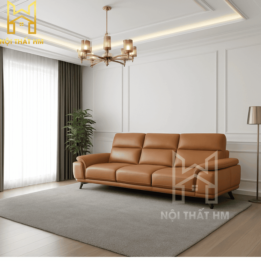 NỘI THẤT HM: SOFA VĂNG DA 3 CHỖ HIỆN ĐẠI SFD01 – ĐẲNG CẤP TRONG TỪNG ĐƯỜNG NÉT