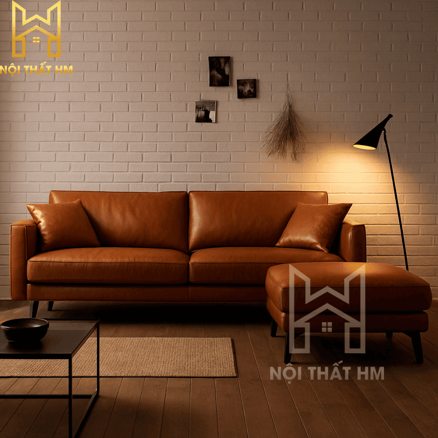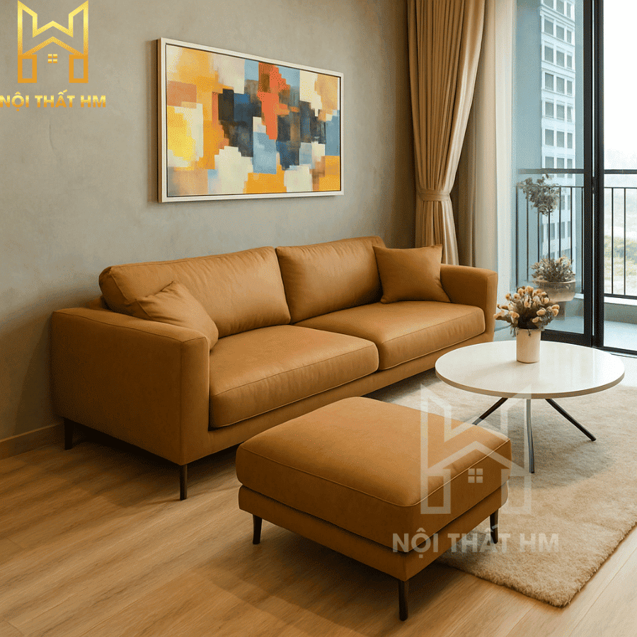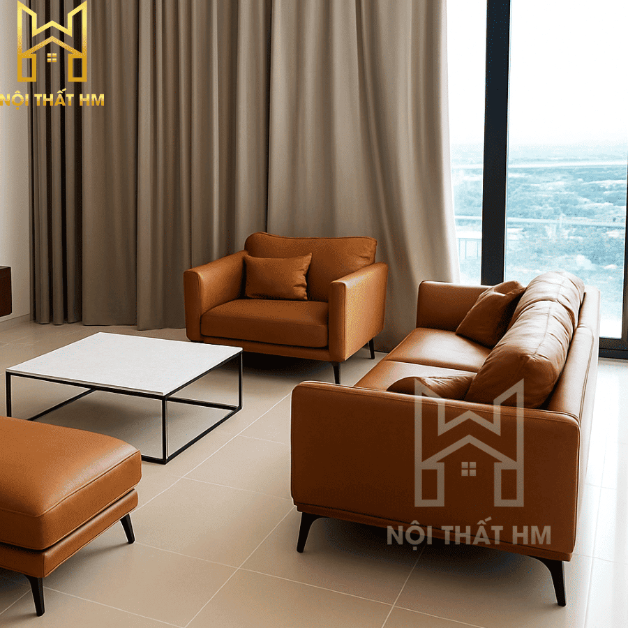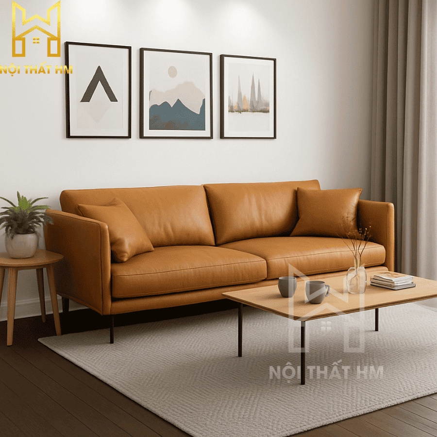 NỘI THẤT HM: SOFA VĂNG DA MÀU DA BÒ SFD05 – ĐIỂM NHẤN ẤM ÁP VÀ SANG TRỌNG