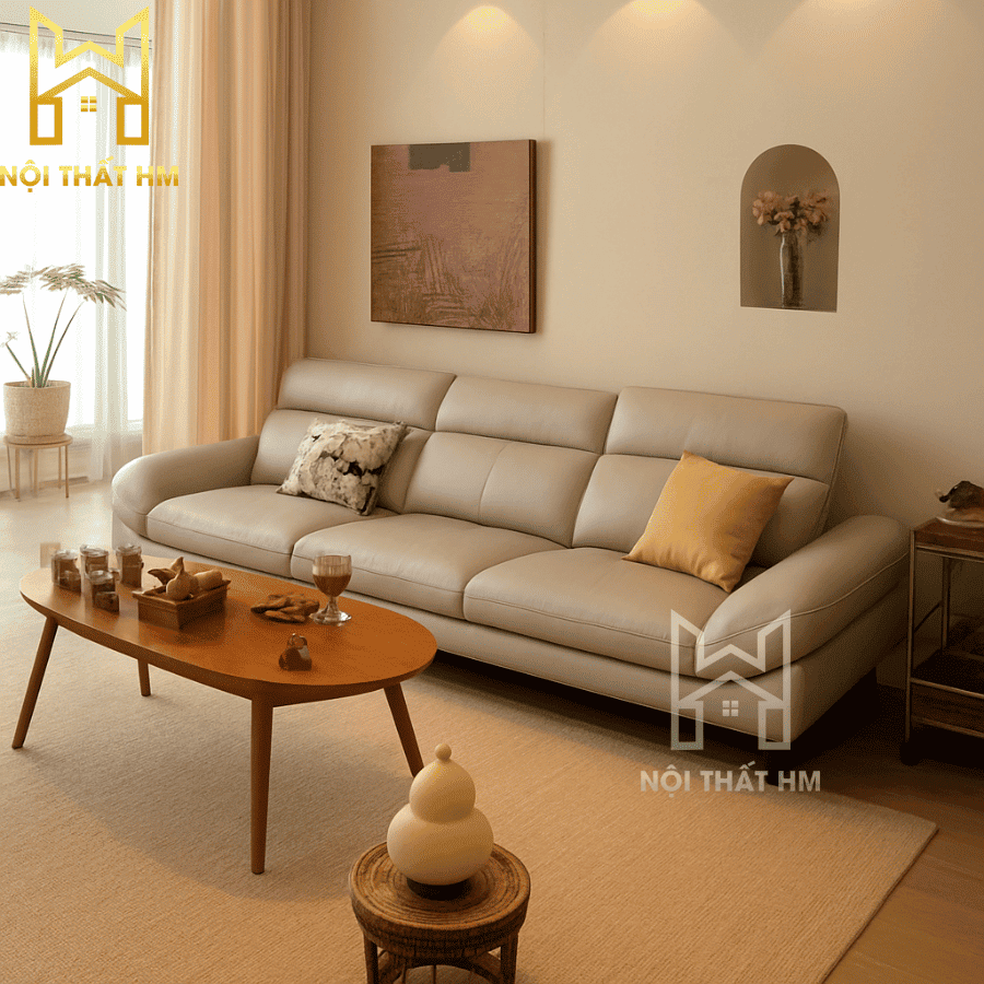 NỘI THẤT HM: SOFA VĂNG DA CHUNG CƯ SFD32 – HIỆN ĐẠI, BỀ THẾ VÀ TỐI ƯU