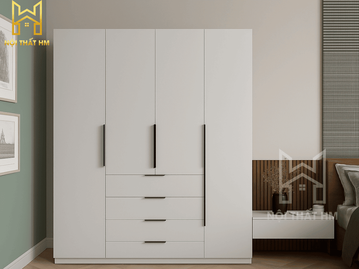 4 Ngăn kéo lớn: Hệ thống 4 ngăn kéo phía dưới cực kỳ tiện lợi để phân loại đồ lót, tất, phụ kiện hoặc các vật dụng cá nhân nhỏ gọn.