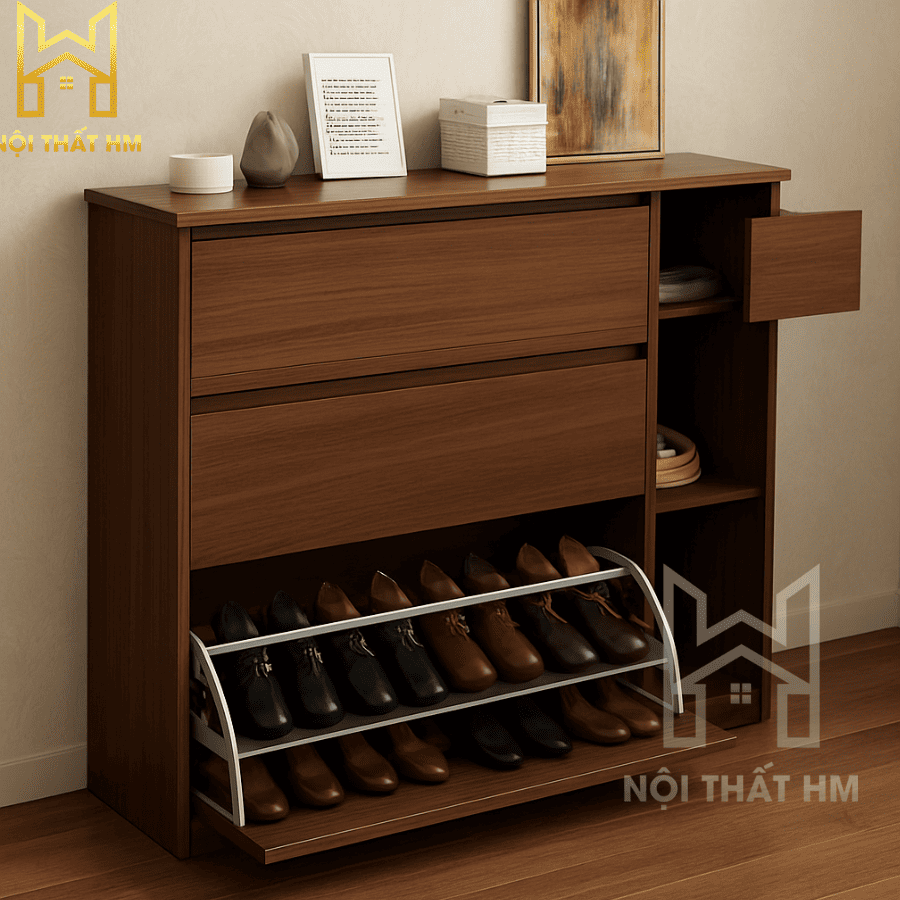 NỘI THẤT HM: TỦ GIÀY THÔNG MINH TG08 – SANG TRỌNG VÀ ĐẲNG CẤP GỖ HỒ ĐÀO