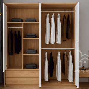 Hệ thống đợt linh hoạt: Tận dụng tối đa phần diện tích còn lại để cất giữ chăn màn trái mùa, vali, túi xách du lịch hoặc các trang phục gấp gọn.