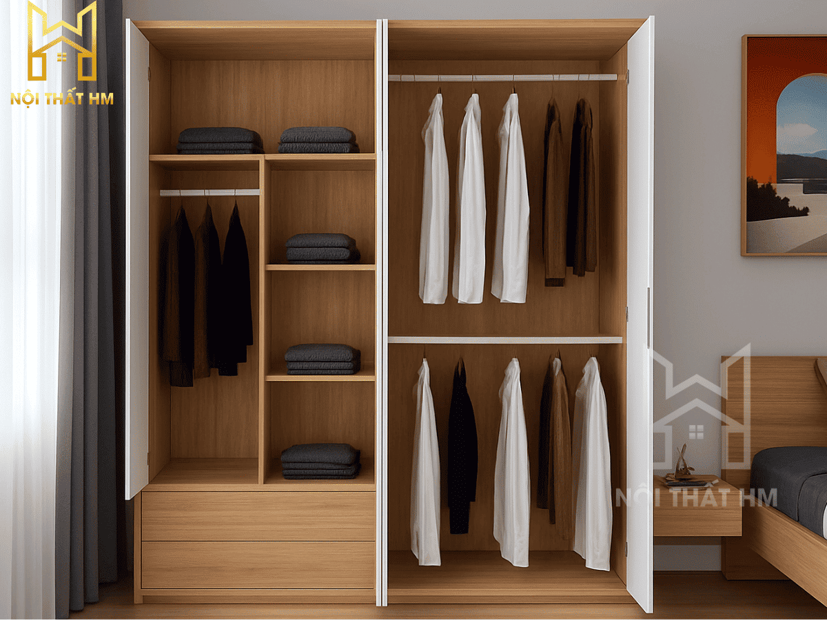 NỘI THẤT HM: TỦ QUẦN ÁO 4 BUỒNG TA15 – ĐẲNG CẤP LƯU TRỮ CHO PHÒNG NGỦ MASTER